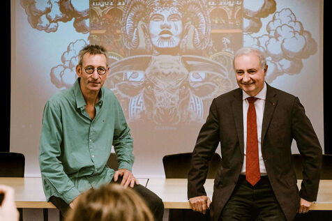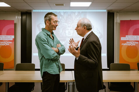 Conférence de presse pour présenter le nouveau spectacle de rue de la compagnie La Machine, qui se tiendra à la fin du mois d'octobre, à Toulouse, sud-ouest de la France, le 1er octobre 2024. En 2018, une première représentation avait permis pendant trois jours de réunir près d'un million de personnes dans les rues de la ville, autour de machines géantes animées telles que le Minotaure fait de bois et de métal.