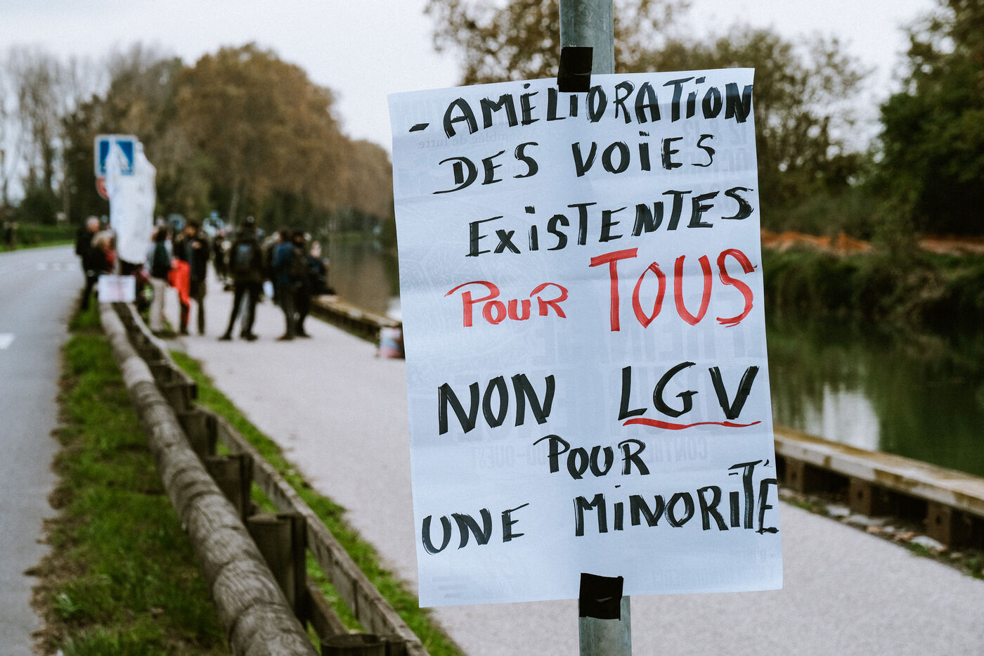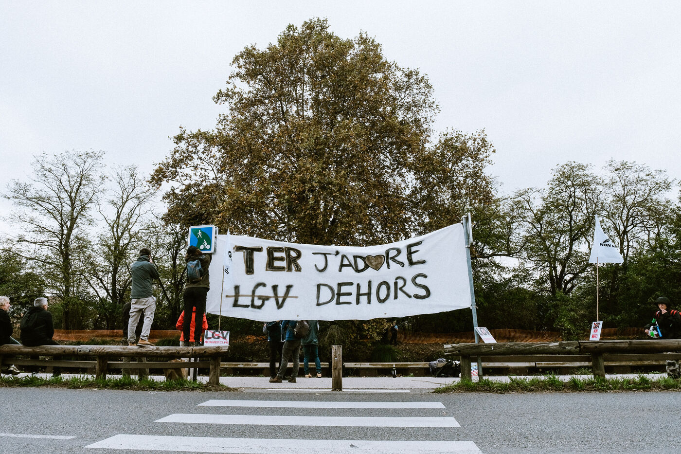 Opposition to the cutting of trees bordering the Lateral Canal to the Garonne river and to accommodate the future High-SpeedRail Line (LGV) linking Toulouse to Bordeaux in Saint-Jory, southwest of France on November 9, 2024.