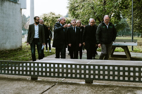 Visit of the Minister of Sports Gil Avérous to the future construction site of the Cité de la Natation and the historic swimming club of TOEC in Toulouse, southwest of France on November 15, 2024.