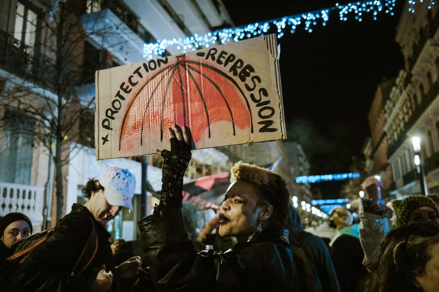 Manifestation de rue pour la journée internationale pour l'élimination des violences faites aux travailleuses du sexe (TDS) à Toulouse, sud-ouest de la France le 17 décembre 2024.