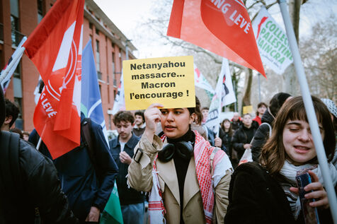 Demonstration for the release of Georges Abdallah in front of Sciences Po and against university partnerships with Israel in Toulouse, southwest France on February 13, 2025.