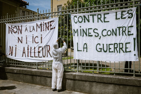Demonstration by various local associations against the relaunch of mining projects in Ariège (and more specifically the reopening of the former Salau tungsten mine) in Foix, southwest France on May 24, 2025.