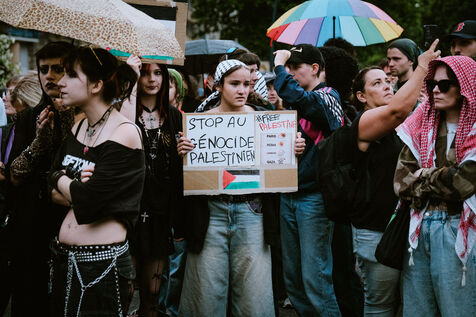 Manifestation organisée par des organisations politiques, syndicales et associatives en soutien au peuple palestine face au blocus d'Israël de la bande de Gaza à Toulouse, sud-ouest de la France le 4 juin 2025.