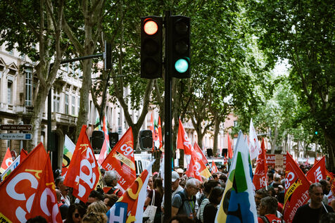 Manifestation contre la réforme des retraites plus de deux ans après sa promulgation par 49.3 et quelques jours avant la fin du conclave des partenaires sociaux à Toulouse, sud-ouest de la France le 5 juin 2025.