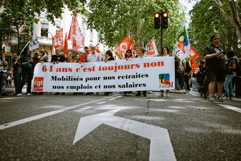 Demonstration against pension reform more than two years after its promulgation by 49.3 and a few days before the end of the conclave of social partners in Toulouse, southwest of France on June 5, 2025.