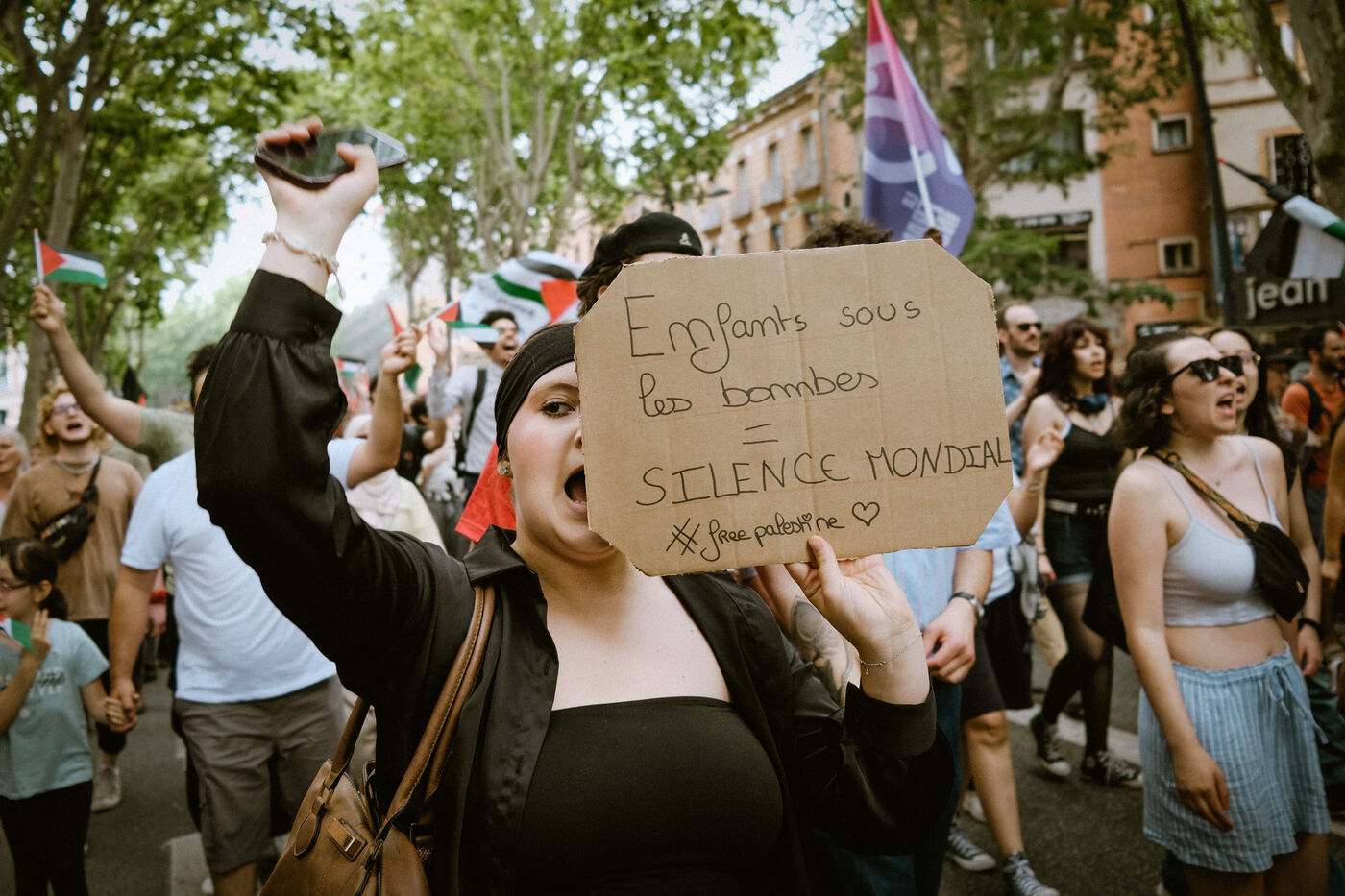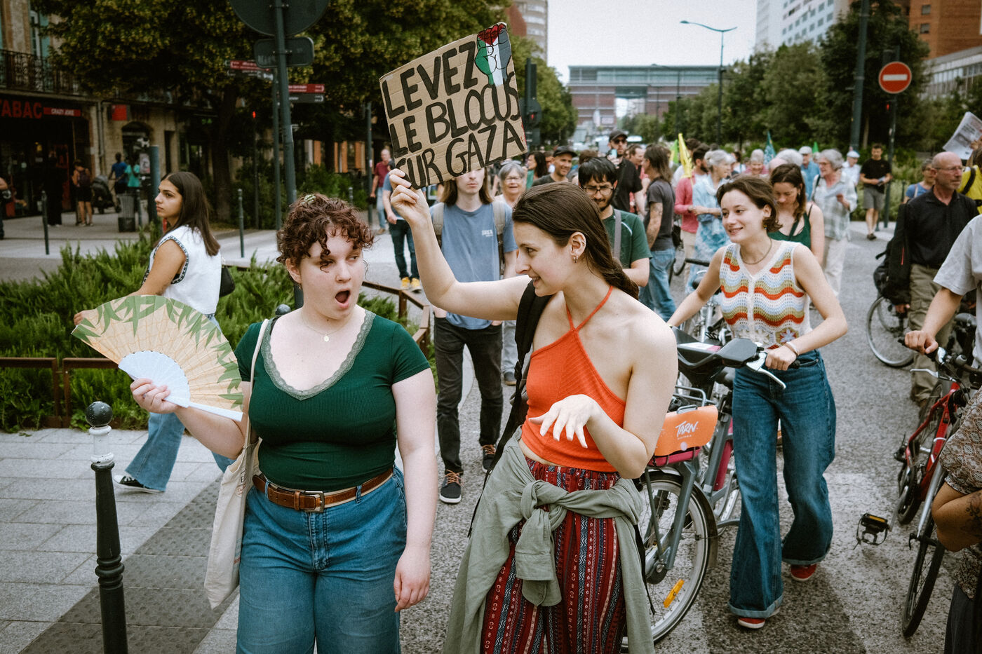 National demonstration called by trade unions (CGT, CFDT, Unsa, Solidaires and FSU) in support of the Palestinian people for an immediate ceasefire in Gaza and for access to humanitarian aid in Toulouse, southwest France on June 14, 2025.