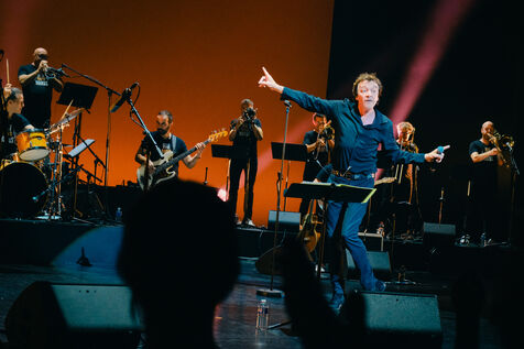 Festival de Toulouse avec le concert du Big Band Brass featuring le chanteur catalan Cali à Toulouse, sud-ouest de la France le 1er juillet 2025.