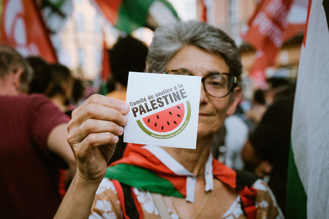Manifestation en soutien au peuple palestinien face à la destruction de la bande de Gaza par Israël et l'inaction de la France à Toulouse, sud-ouest de la France le 3 juillet 2025.