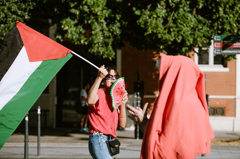 Marche nationale organisée par l'ONG Amnesty International contre le franchissement des lignes rouges par Israël à Gaza en rapport avec la répression et le blocus organisés par le gouvernement hébreu entrainant une famine en Palestine à Toulouse, sud-ouest de la France le 8 juillet 2025.