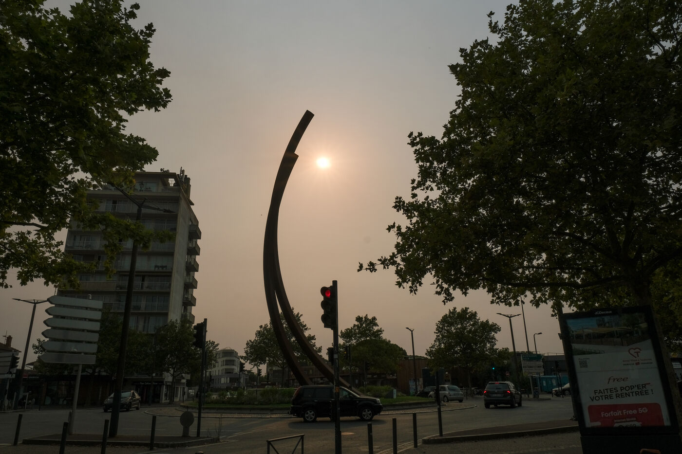 The violent fires in Spain and Portugal are turning the sky and sun of western France orange, reminiscent of an afternoon sunset in Toulouse, southwest France, on August 17, 2025.
