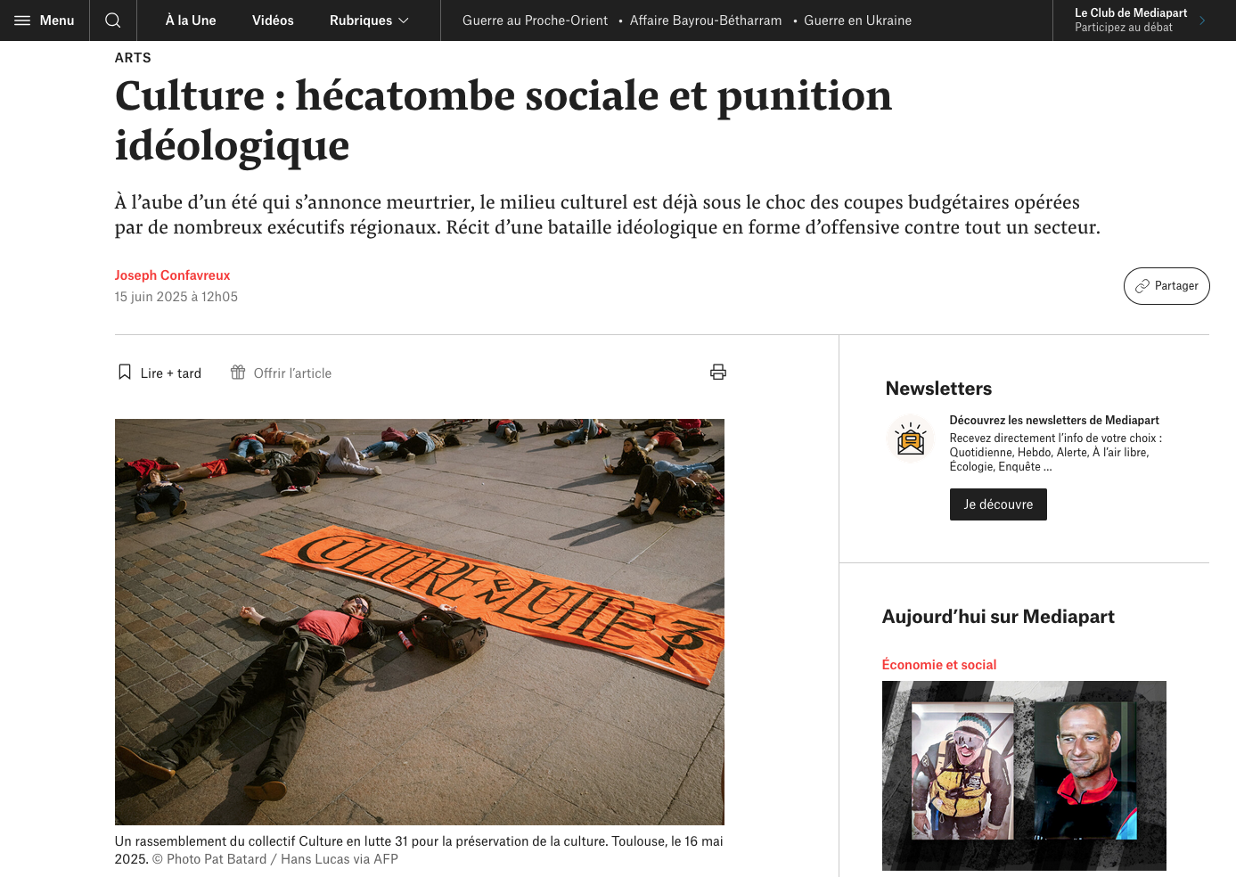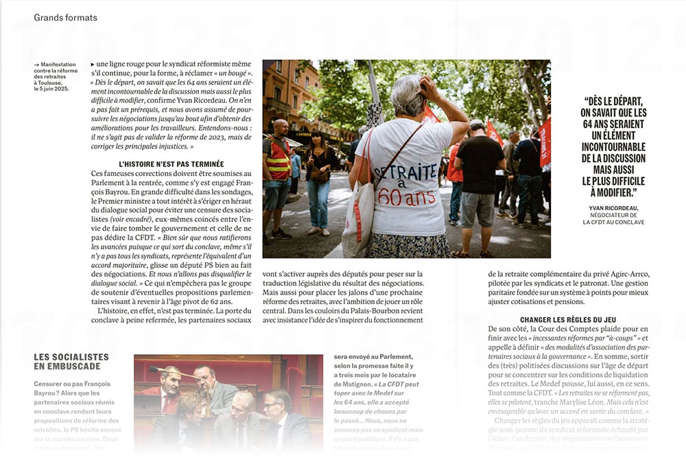 Pat Batard Publications Séries / Archive Creative — Culture — Environnement — Guerre et conflits — Occitanie — Politique — Société — Spiritualité — Sport — Multimedia Sélection de séries Madame Figaro - 19/09/2025 ELLE - 18/09/2025 Les Jours - 09/09/2025 L'Humanité magazine - 2025/09/11 La Croix - 12/08/2025 Télérama - 16/07/2025 Le Nouvel Ob's - 19/06/2025 Médiapart - 15/06/2025 Le JDD - 15/06/2025 Le Monde - 14/06/2025 La Vie - 04/06/2025 Libération - 26/05/2025 Le Figaro - 24/04/2025 Libération - 01/04/2025 Philosophie Magazine - Avril 2025 Le Figaro - 22/03/2025 Humanité - 25/02/2025 L'Humanité - 9/12/2024 Politis - Hors série Novembre-Janvier 2024 La Tribune Dimanche - 17/11/2024 - Arnaud Rousseau, FNSEA