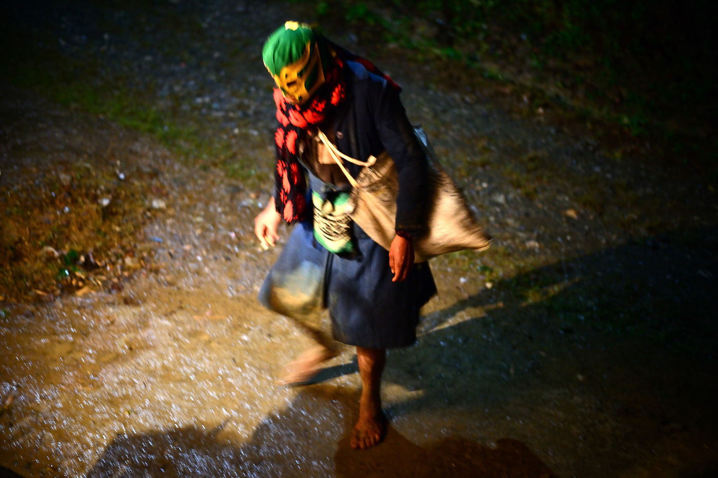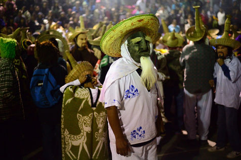 The tradition of the Day of the Dead, which is spread throughout Mexico, has its own particularities depending on the region. In the Sierra Mazateca the coming back of the dead lasts a week and the altars are erected inside the houses. For the Mazatecs, the souls of the deceased return in the form of Huehuentones, masked and magical characters who come to honour the dead of each house by dancing in front of the altars. Each family offers food and drinks to the Huehuentones who cannot be seen without their masks.