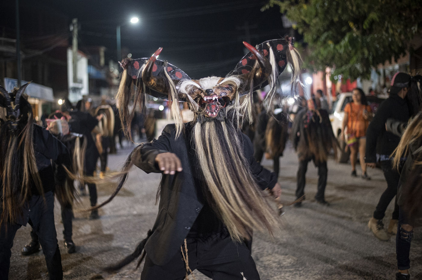 On the Costa Chica of Guerrero, in Cuajinicuilapa, for the Day of the Dead, Afro-Mexicans dance for three days. The different districts of the city have a group of devils accompanied by musicians who play harmonica, the friction drum and the quijada, a donkey's jaw rubbed with a stick. The Tenango, the father of the devils, and the Minga, a man disguised as a woman, guide each group of devils during the dances.