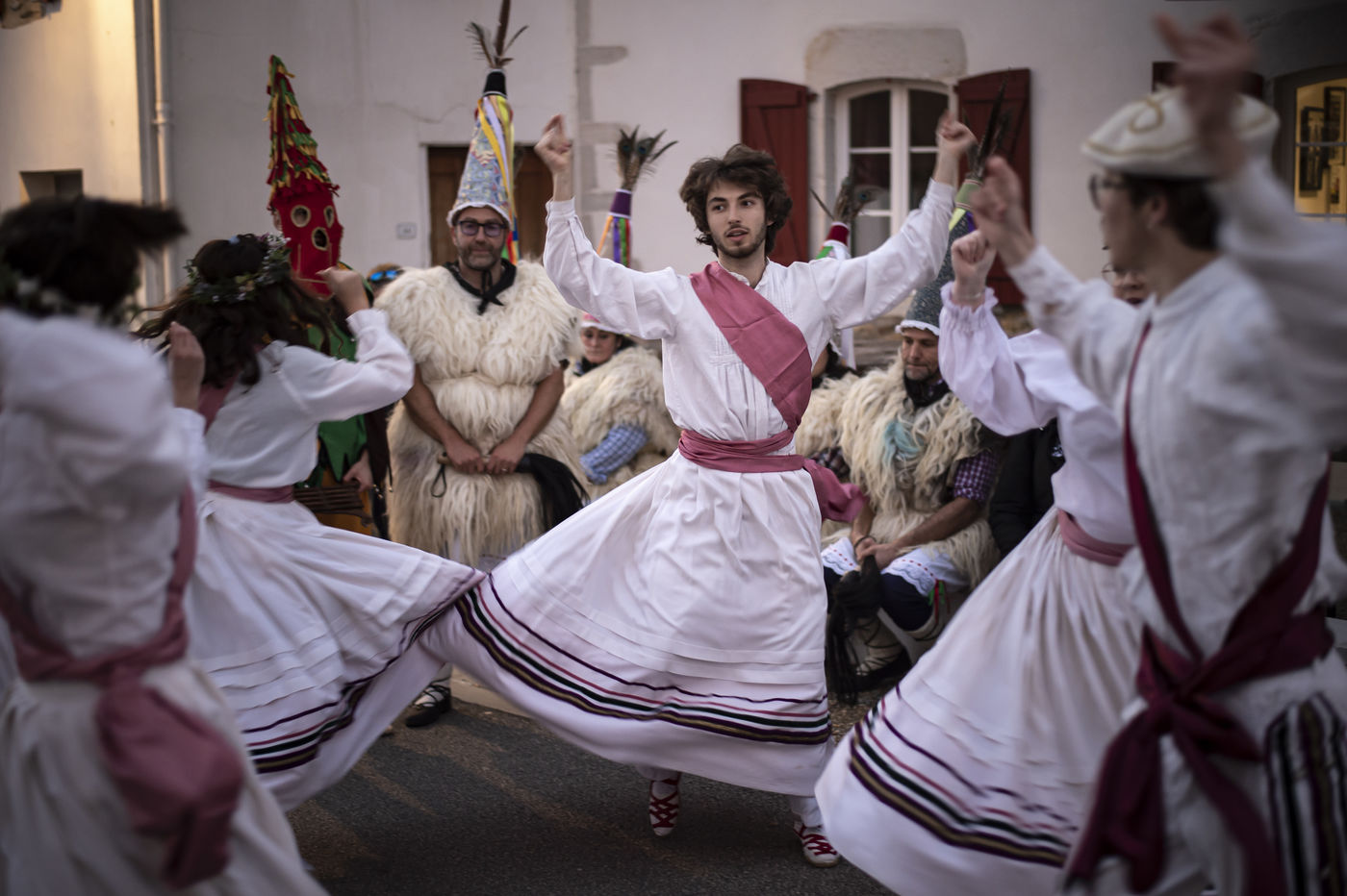 The bear also comes out in Biarritz, for the carnival. Horned and wearing a bishop's mitre, he opens the way for the dancers from the Maritzuli company.