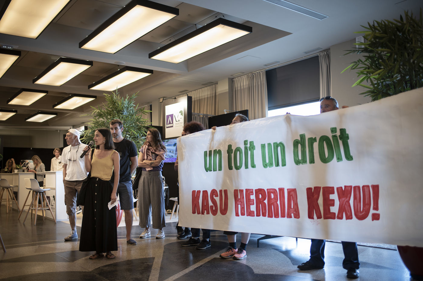 A Anglet, du 1 au 3 juillet se tient un salon immobilier. Le premier jour du salon, le collectif OSTIA s'est manifesté à l'entrée puis à l'intérieur du salon pour expliquer les raisons de la colère.
