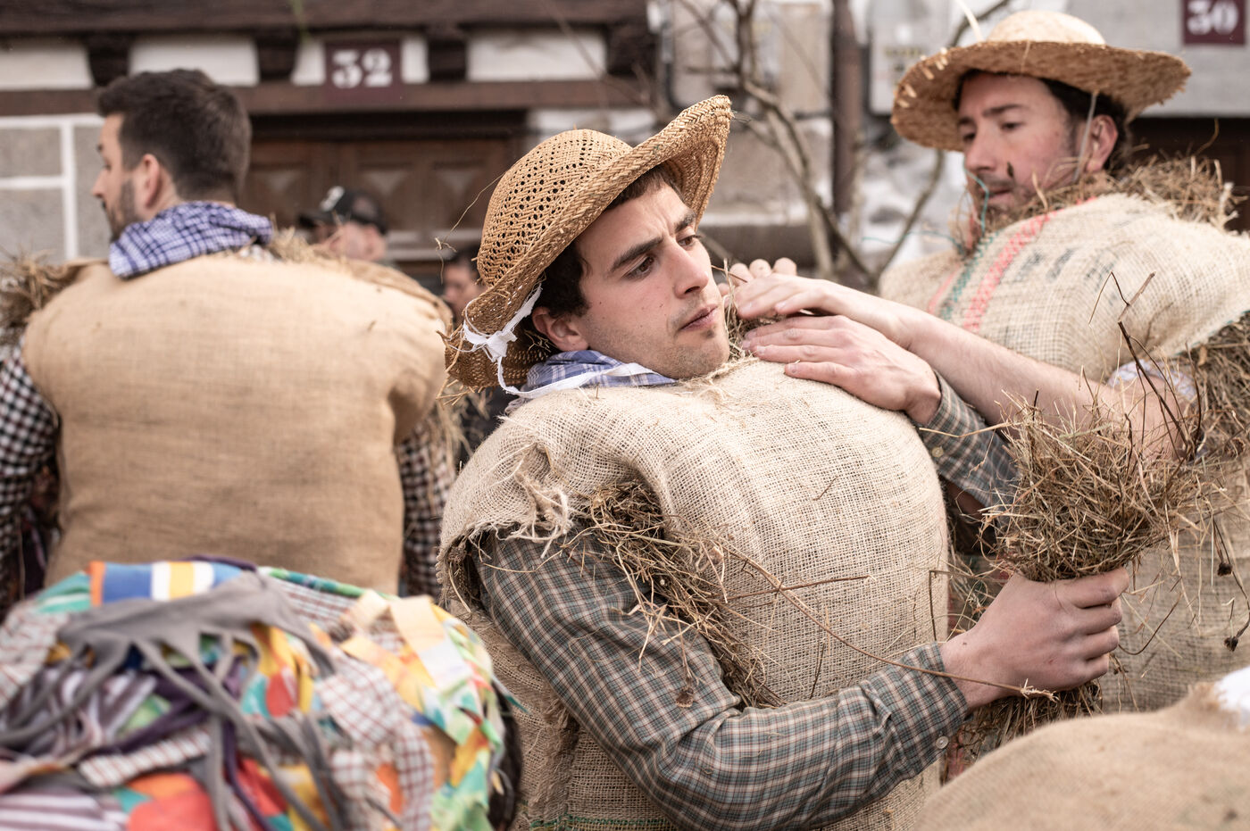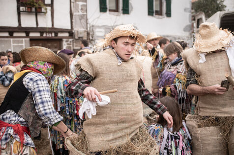 According to tradition, at dusk on Carnival Sunday, the Zaku Zaharrak, obese figures with straw-filled bodies and masked faces, parade through the village streets. Armed with an inflated pig's bladder, they beat anyone within reach.