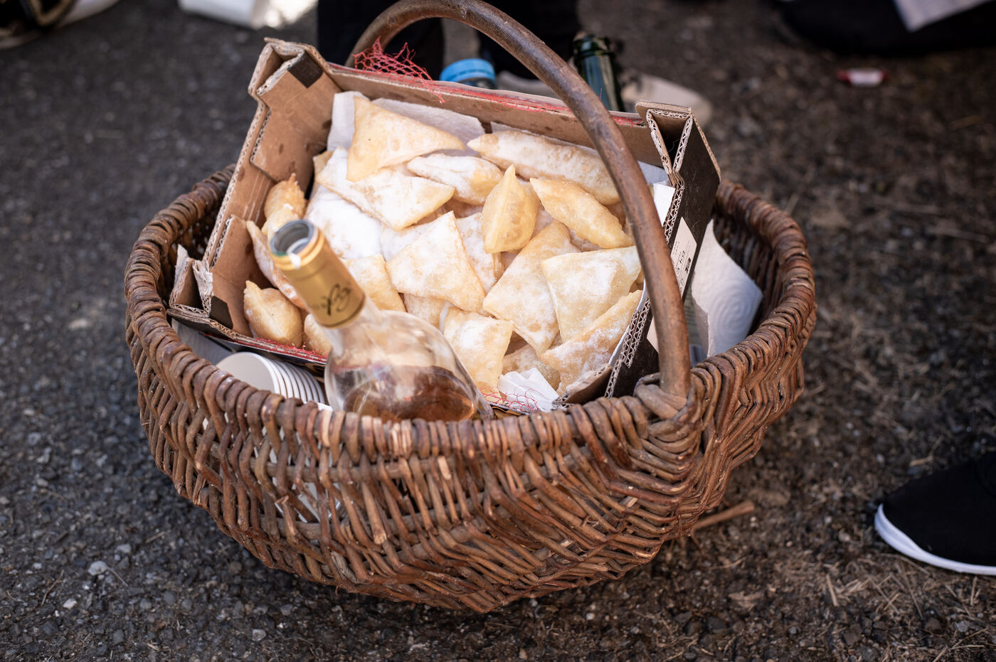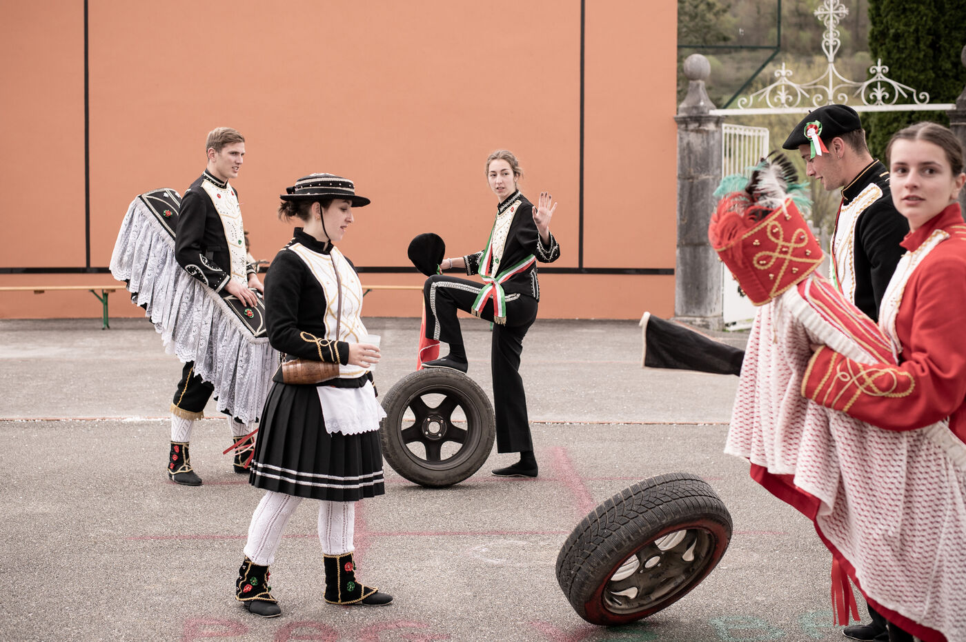 During the morning, the people of the village we visited put up symbolic barricades in different parts of the village. In front of these barricades, tables stocked with an abundance of food and drink, young people from Pagolle and the village visited compete in dance.