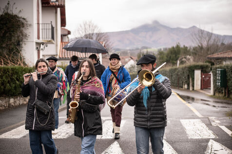 Le cortège est mené par l'ours qui sort de son hibernation, suivi des kaskarots, zirtzils, ponpierra, kotilun gorri et musiciens.