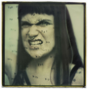 Si l'on se plonge dans l'incroyable quantité de films Polaroid disparus, on trouve le Fade To Black, conçu pour que l'image disparaisse dans les 24 heures. La photo se développait comme un pola noir & blanc avec une teinte verdâtre, parfois jaunâtre, puis poursuivait son développement, devenant de plus en plus sombre, jusqu'au noir complet. Le Fade to Black a été conçu à l'origine pour un usage industriel, pour que les images ou les documents puisse être partagés, puis jetés sans se soucier d'éventuelles fuites. Le film a néanmoins trouvé un usage artistique, intégrant la célèbre ligne Artistic TZ pour les appareils de type SX-70. Si l'on ouvre la photographie en deux, on peut stopper le processus chimique et conserver l'image, souvent rayée, endommagée ou tachée. C'est précisément le but de cette série de portraits. Le film Fade to Black est aujourd'hui presque impossible à trouver.