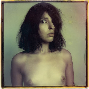 The film did find some artistic use and was even released as part of the Artistic TZ film series for the SX-70 cameras. If the plastic casing was opened, the actual print could be dried and stopped from developing, though, it often resulted in a bit of damage. Which is precisely the purpose of this portrait serie. The Fade to Black film is today almost impossible to find.