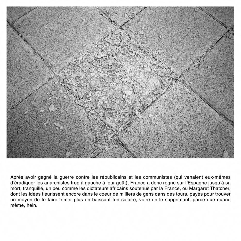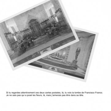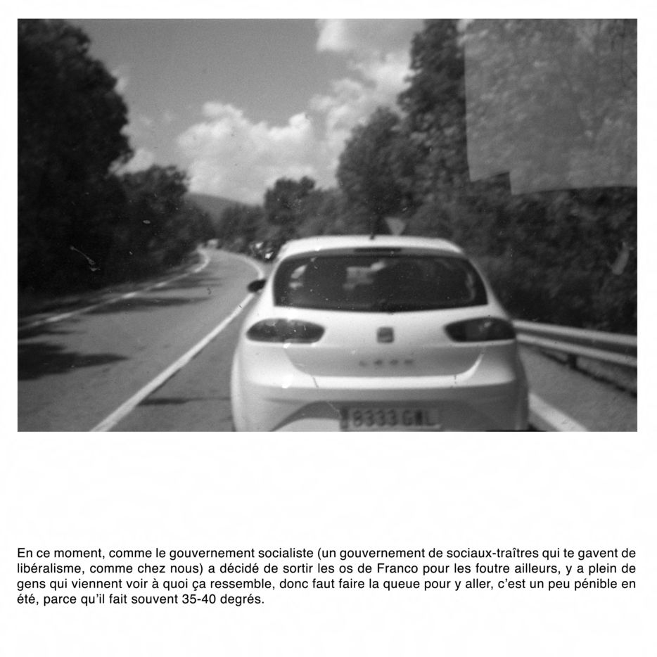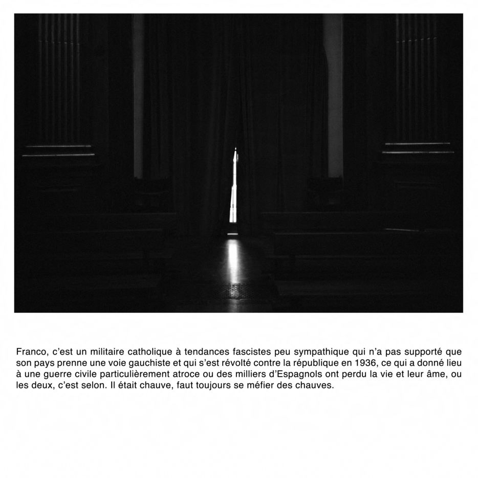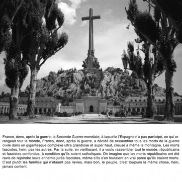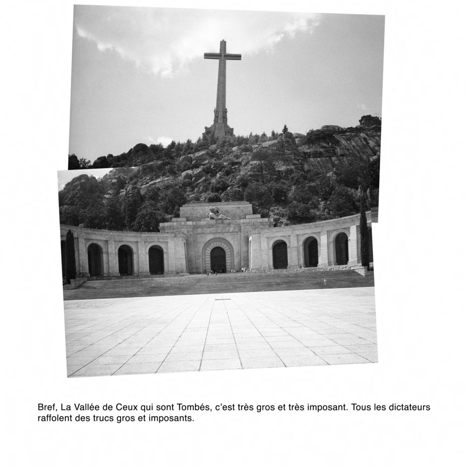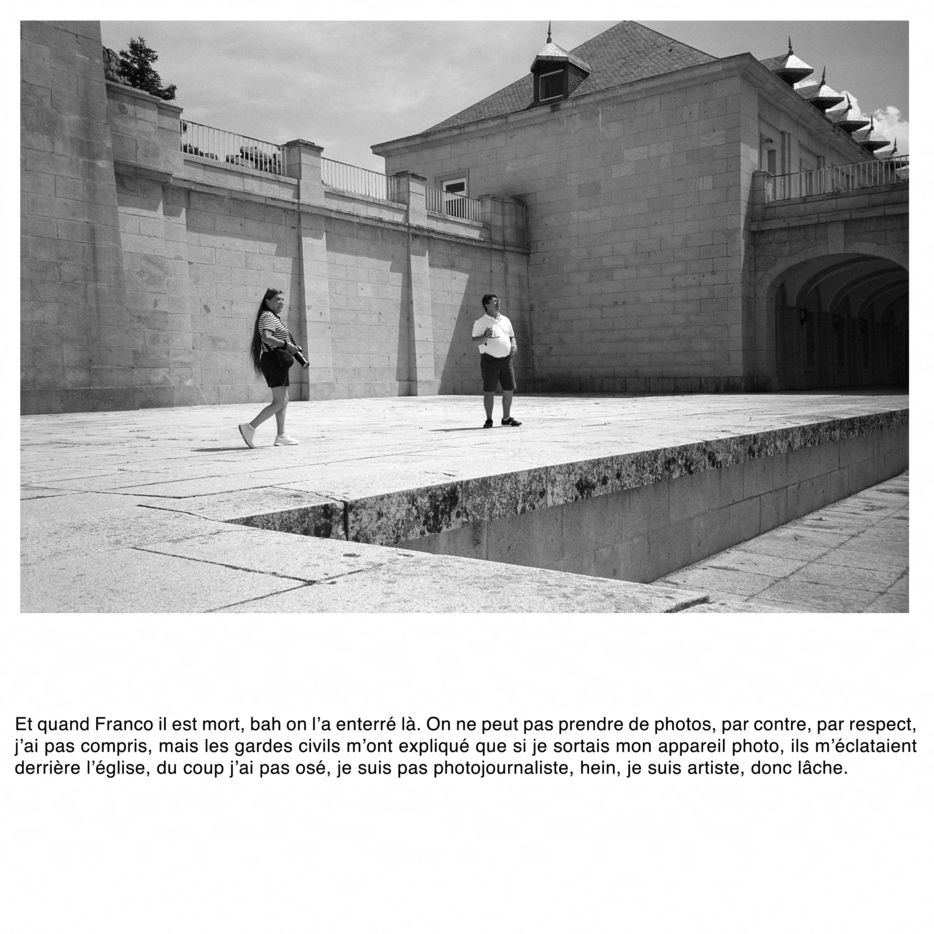 Comment photographier l'invisible ? Francisco Franco est enterré à quelques kilomètres de Madrid, dans un mausolée mégalomane. Il est interdit de photographier l'intérieur de la chapelle funéraire. Comment faire un sujet photographique sur un lieu impossible à photographier ? Comment révéler le tabou espagnol du franquisme et son héritage dans la démocratie parlementaire du pays ? Comment parler de la guerre civile ?