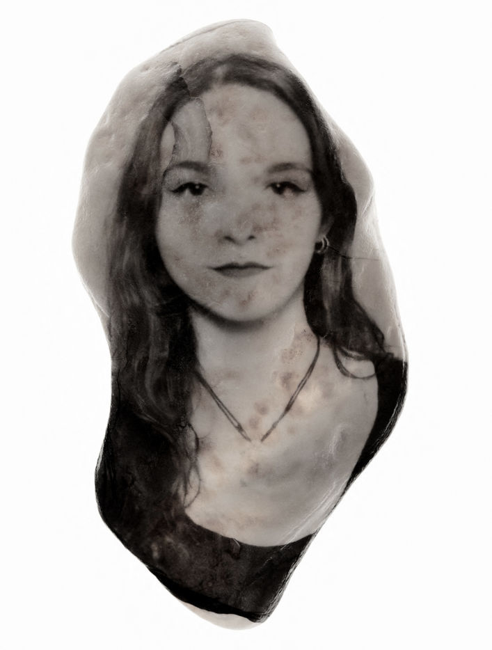 Portraits of young women in stones like so many stones thrown at the face of the patriarchy. These stone are real analog objects, lifted polaroids. Paris, March 2019.