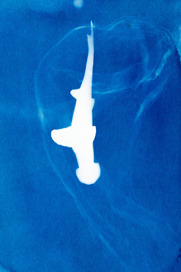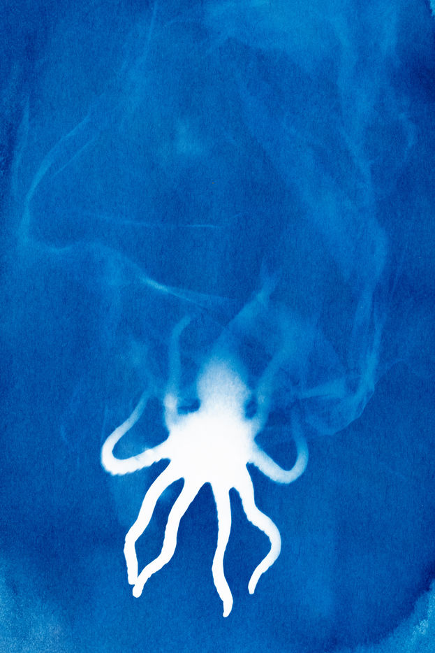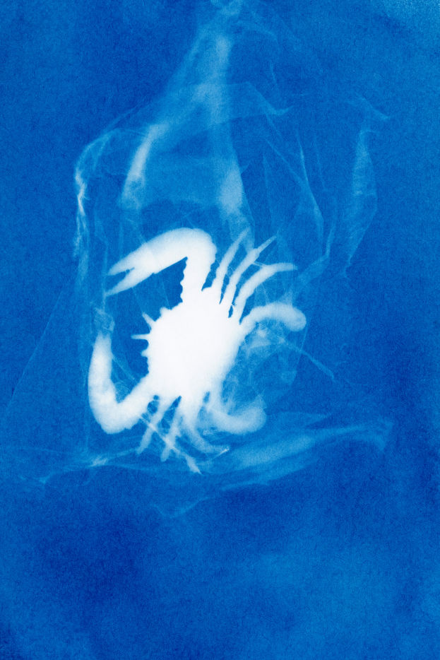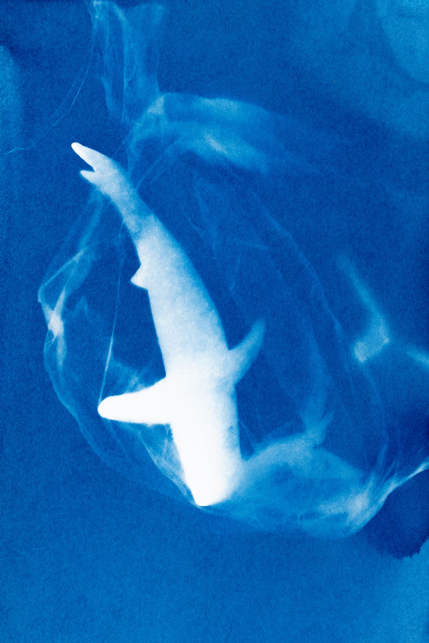 Visual work made with cyanotype process to show the plastic pollution in the ocean, Paris, France, 15th of August 2019.