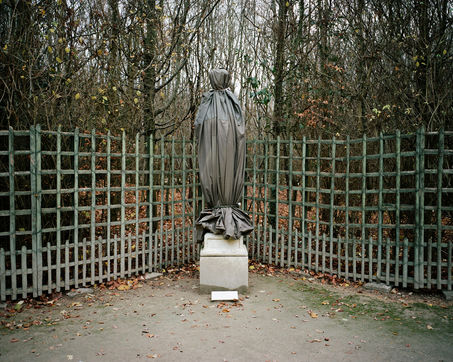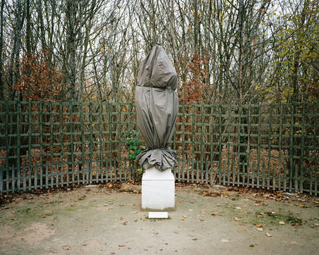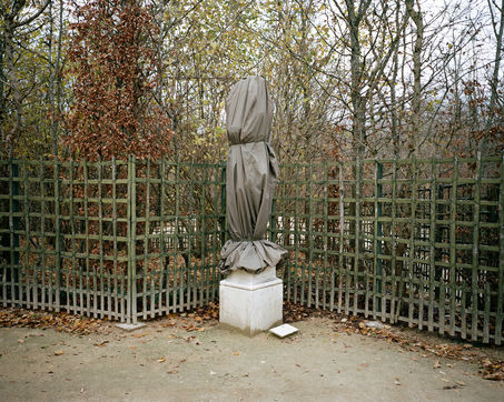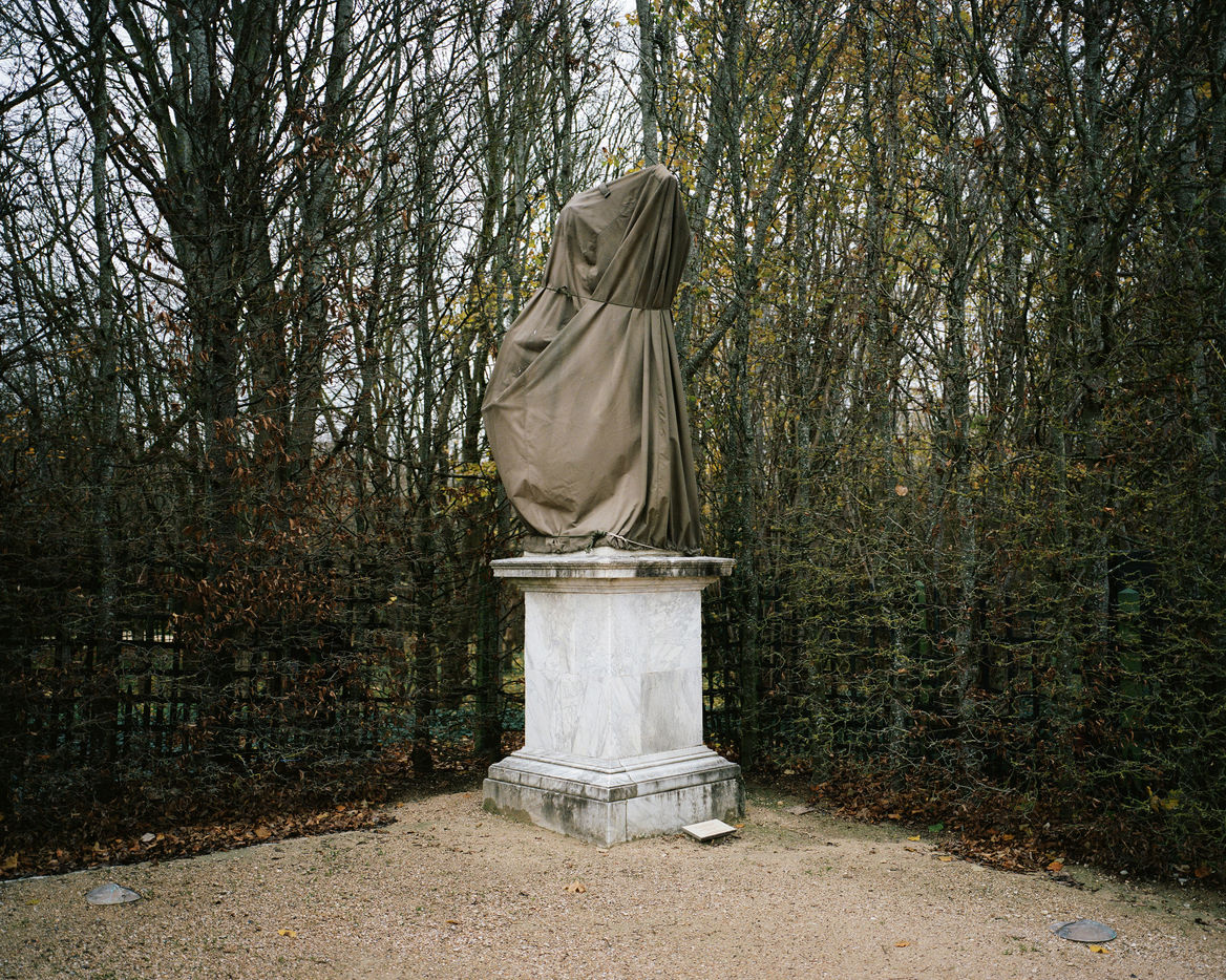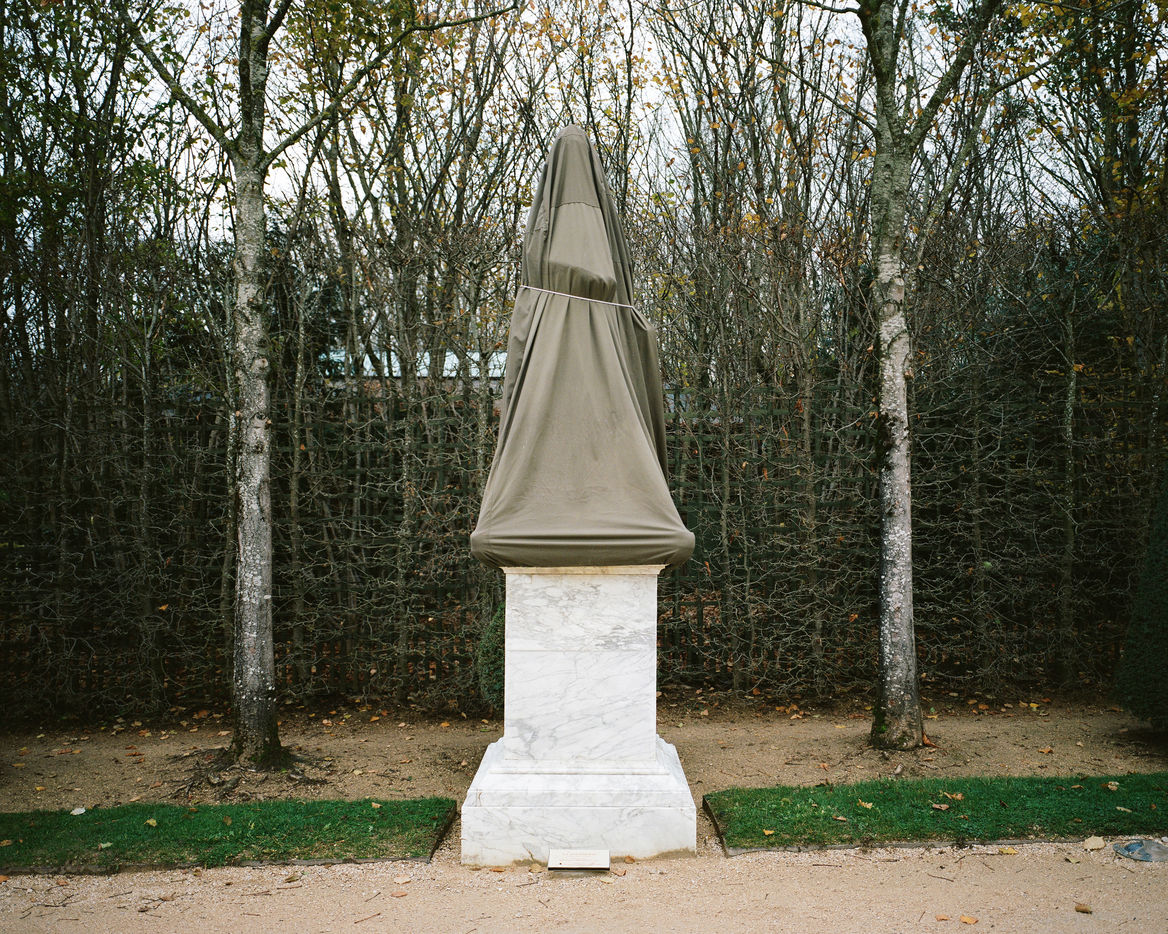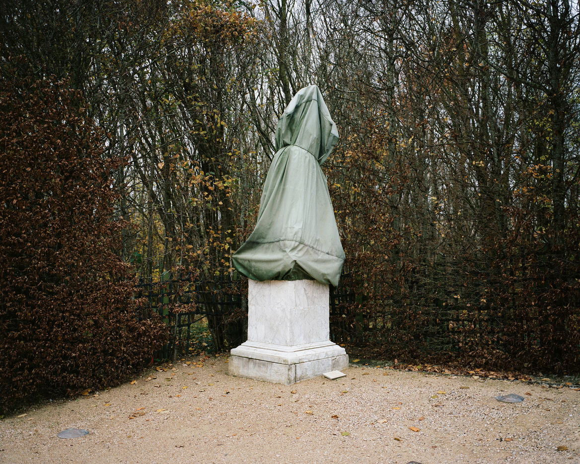 During winter, the statues in Versailles Castle's park are wrapped with canva to protect them from the cold.