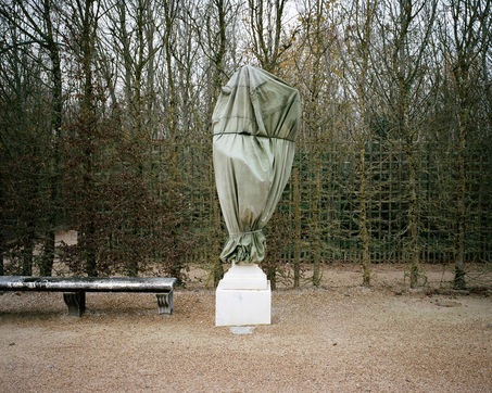En hiver, les statues du parc du château de Versailles sont emballées dans de la toile pour les protéger du froid et des élements.