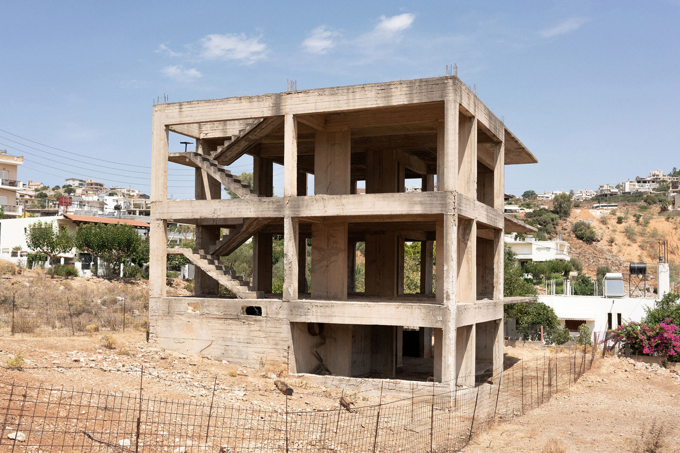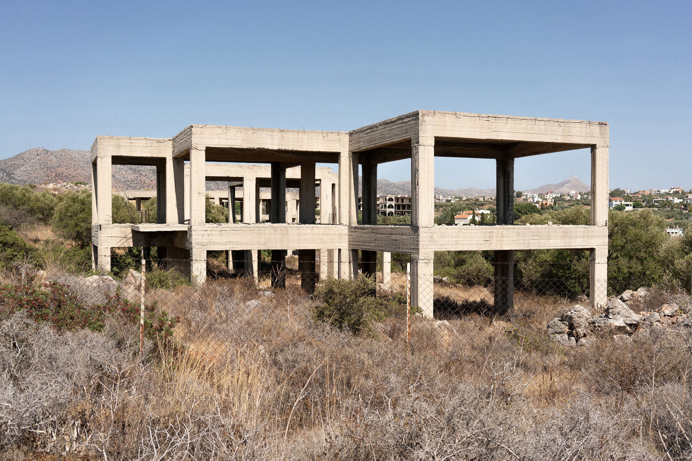 Crete, an island in the south of Greece, presents everywhere these concrete structures left in decay due to the economic crisis that is taking hold in this region of the world. These images were taken in the autumn of 2020.