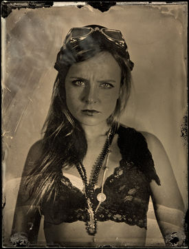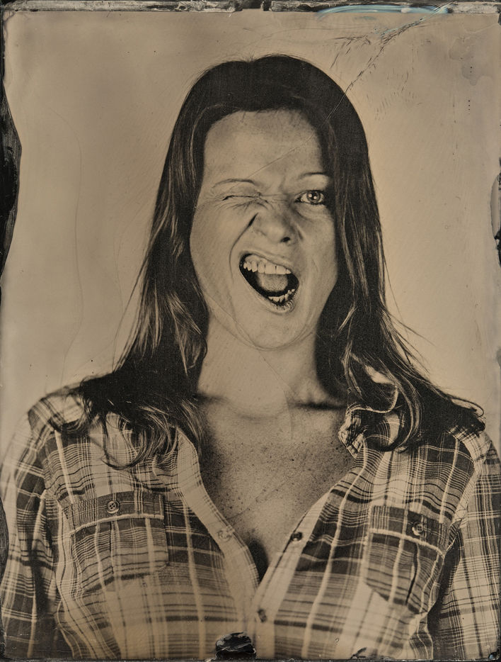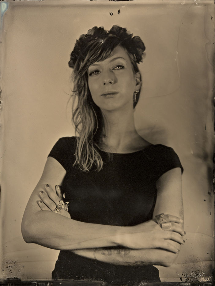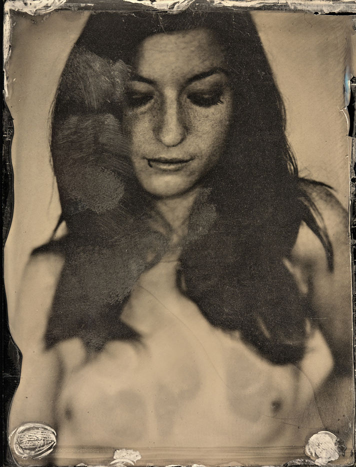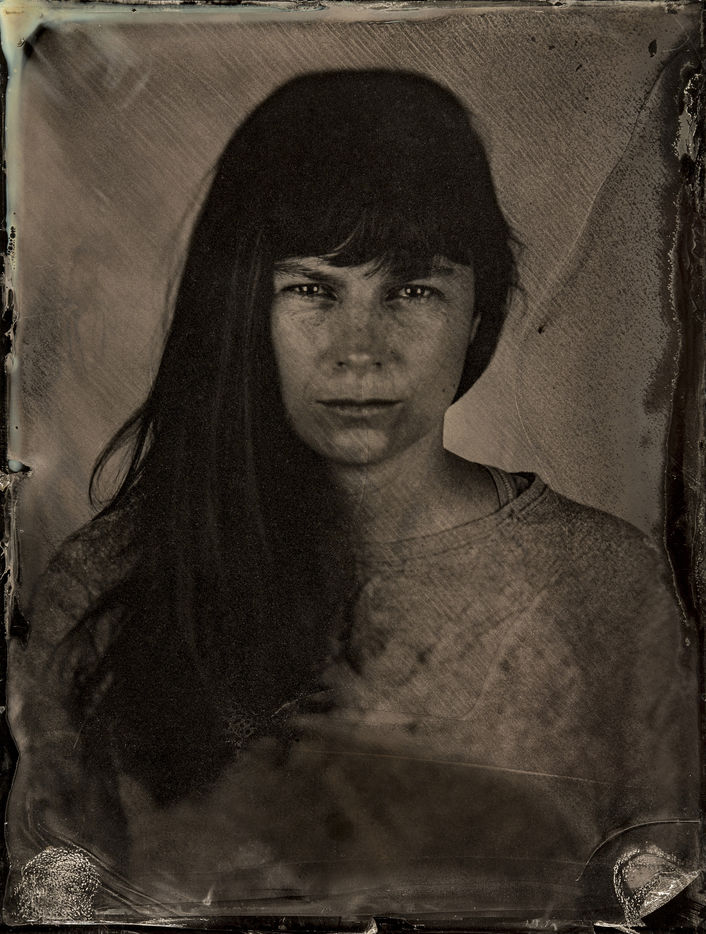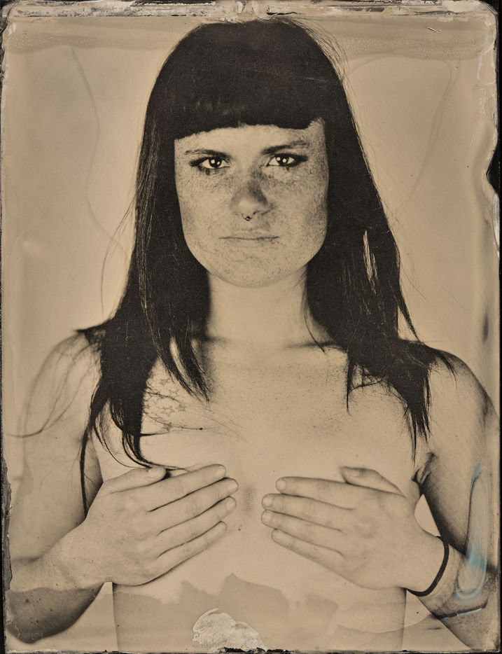 collodion humide est un procédé ancien qui permet d'obtenir un négatif sur plaque de verre ou un positif direct sur plaque métallique. Il se distingue des procédés secs par la nécessité d'exposer et de développer la plaque immédiatement après l'application de l'émulsion. Ces portraits sont des collodions sur plaque de verre, au format 4x5, réalisés à la chambre Horseman.
