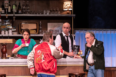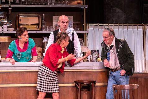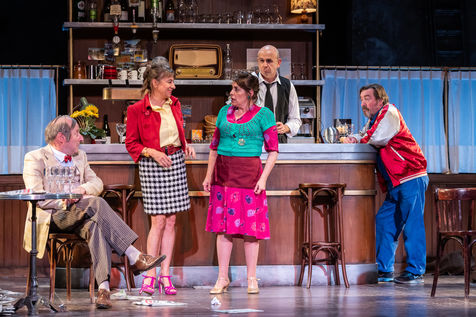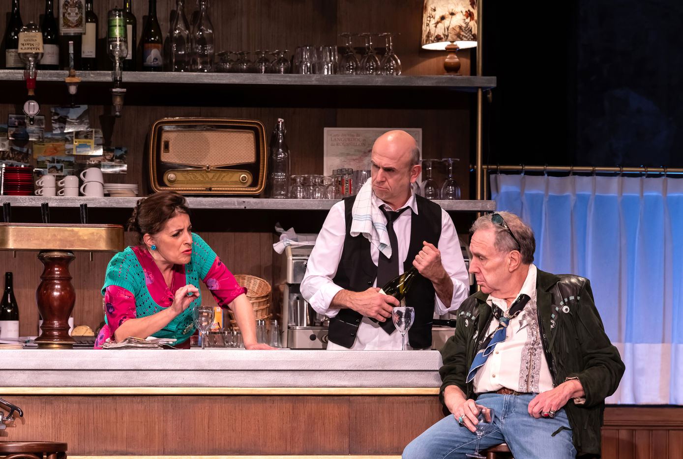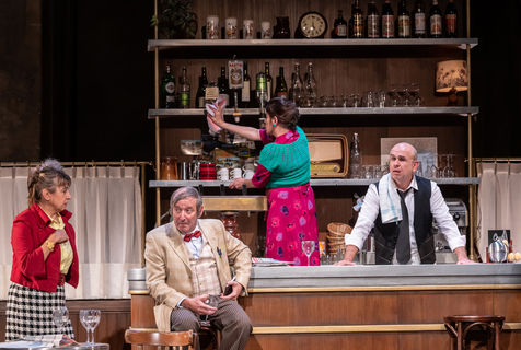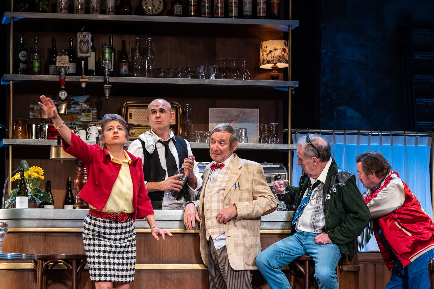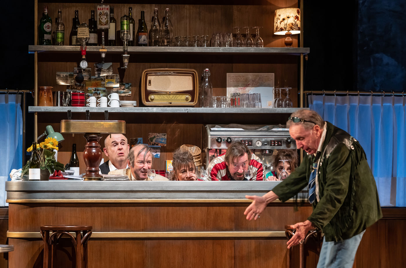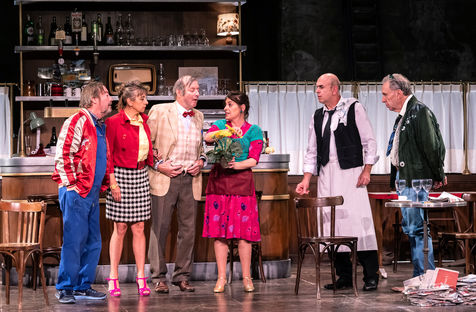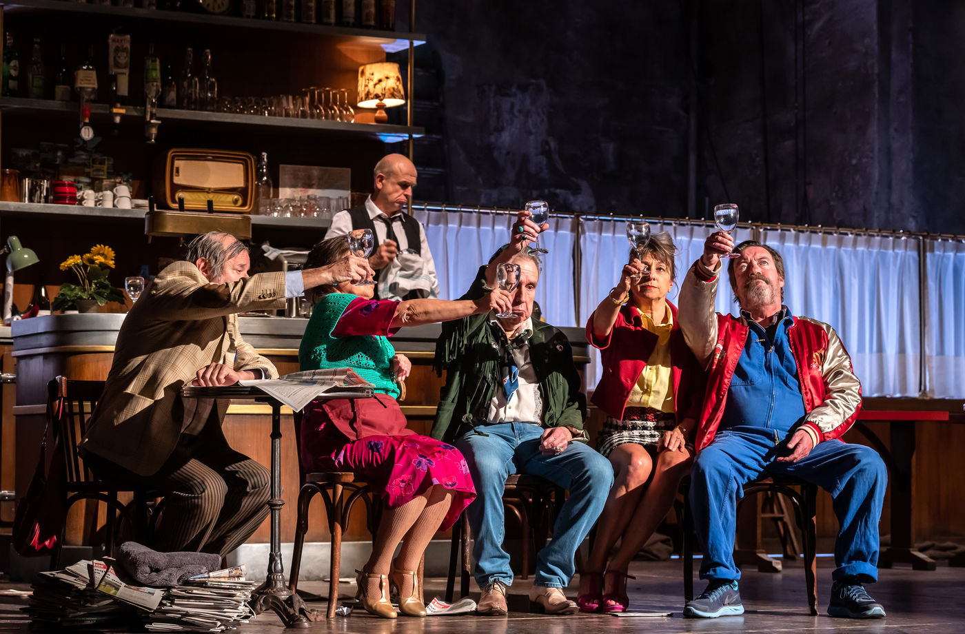 BREVES DE COMPTOIR TOURNEE GENERALE texte de Jean-Marie Gourio mise en scene de Jean-Michel Ribes avec Philippe Duquesne, Nanou Garcia, Gilles Gaston-Dreyfus, Philippe Magnan, Marie-Christine Orry et Philippe Vieux au Theatre de l Atelier. Photographie de Pascal Gely / Hans Lucas