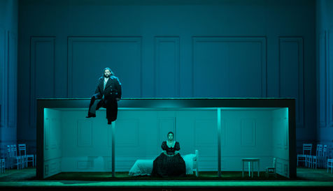 EUGENE ONEGUINE musique de Piotr Ilitch Tchaikovski direction musicale de Karina Canellakis livret de Constantin Chilovsky et Piotr Ilitch Tchaikovski mise en scene de Stephane Braunschweig avec Mireille Delunsch : Madame Larina, Gelena Gaskarova : Tatiana, Alisa Kolosova : Olga, Jean-Sebastien Bou : Eugene Oneguine, Jean-Francois Borras : Vladimir Lenski, Jean Teitgein : Prince Gremine et Delphine Haidan : Filippievna au Theatre des Champs Elysees. Photographie de Pascal Gely / Hans Lucas