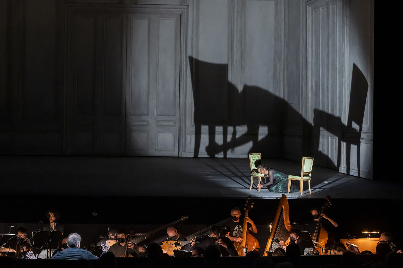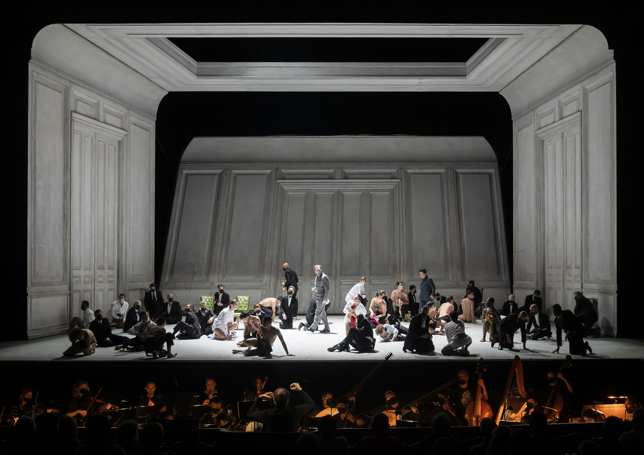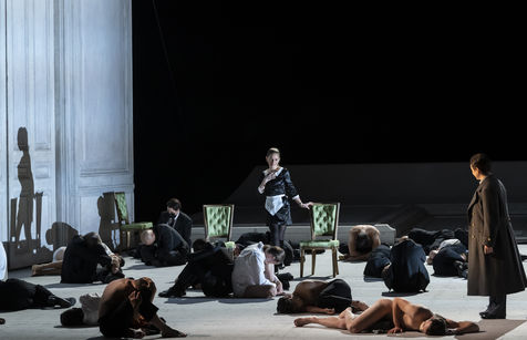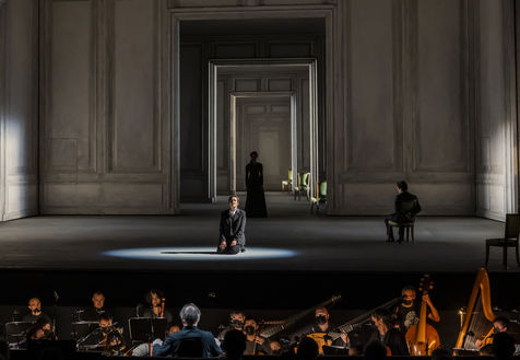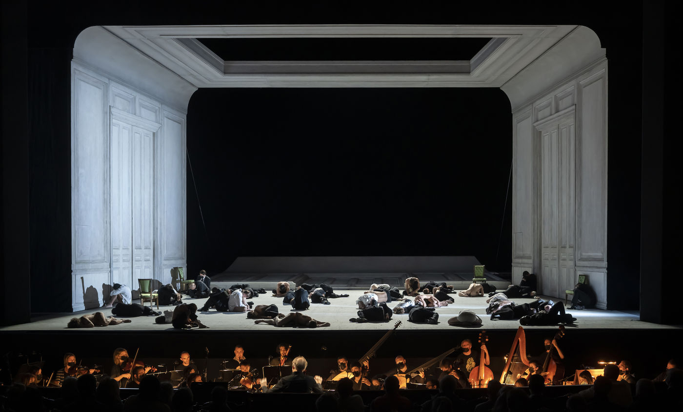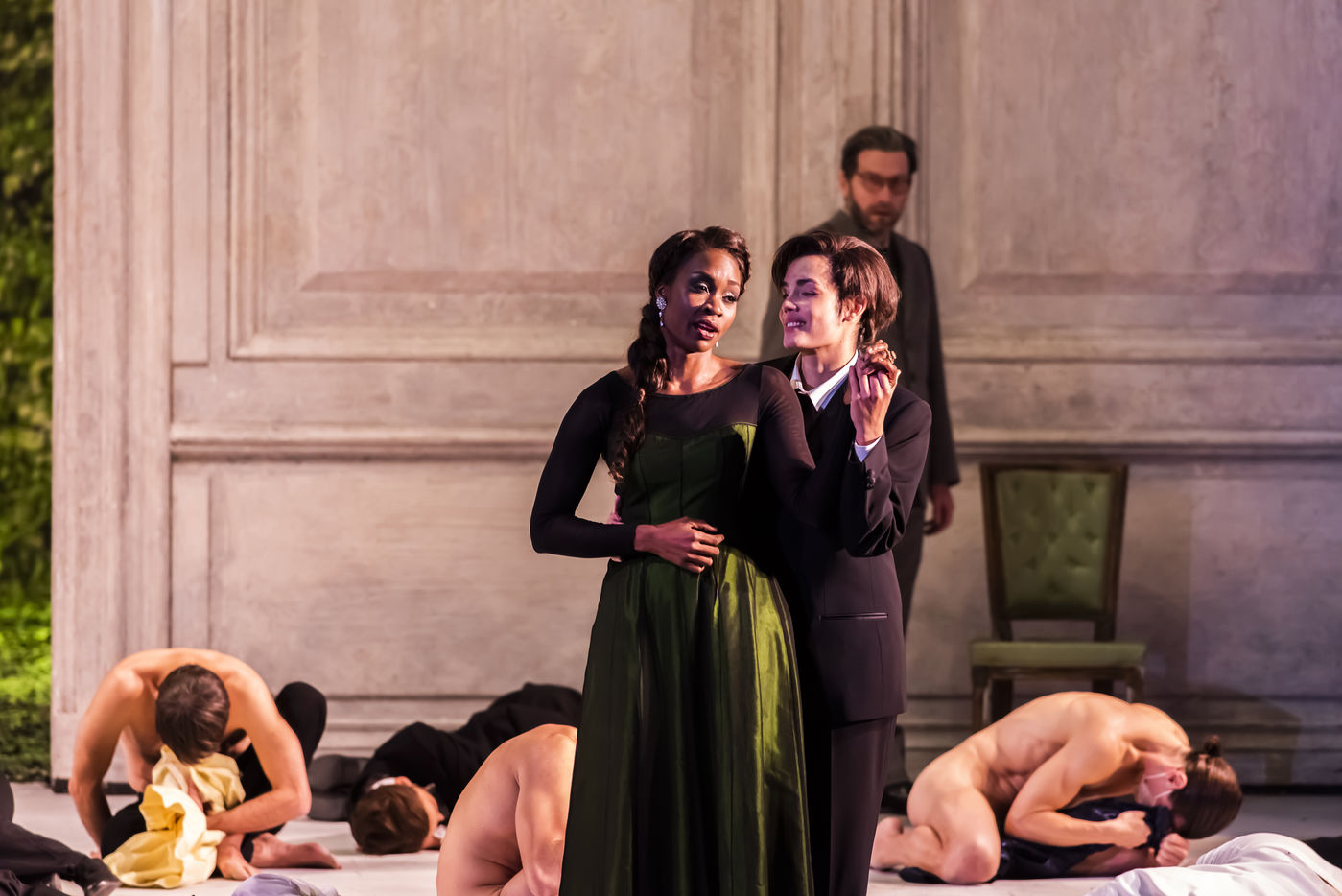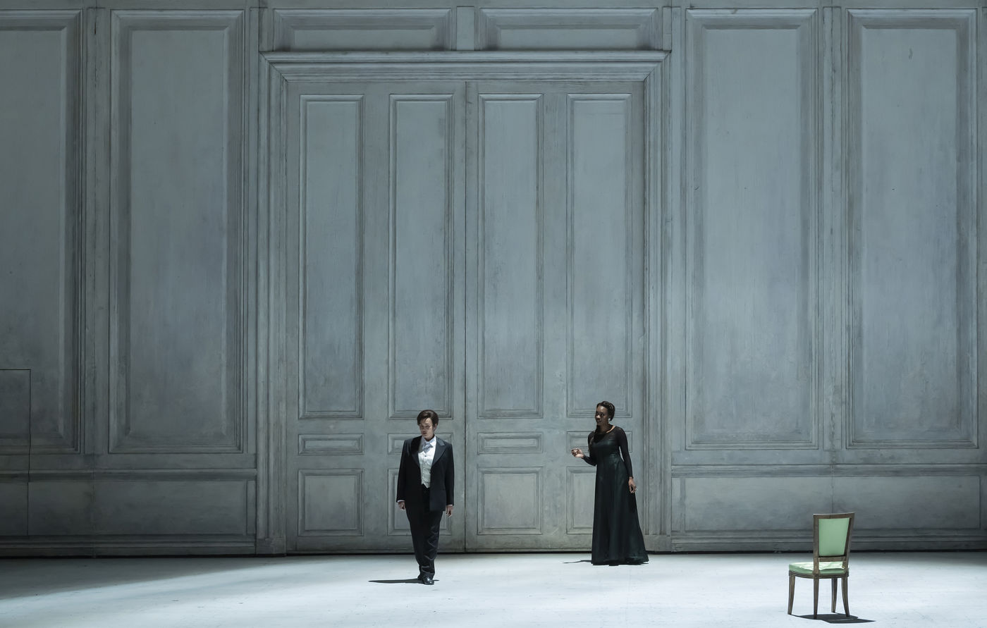 ALCINA musique Georg Freidrich Haendel direction musicale Thomas Hengelbrock mise en scene Robert Carsen avec Jeanine De Bique : Alcina, Gaelle Arquez : Ruggiero, Sabine Devieilhe : Morgana, Roxana Constantinescu : Bradamante, Rupert Charlesworth : Oronte et Nicolas Courjal : Melisso : Melisso a l Opera National de Paris Palais Garnier. Photographie de Pascal Gely / Hans Lucas