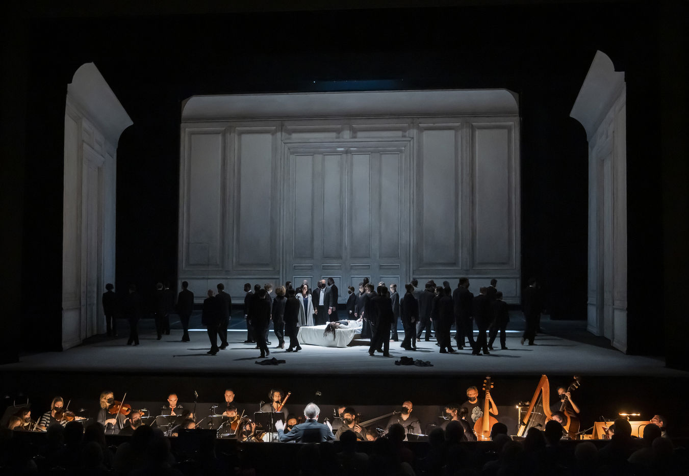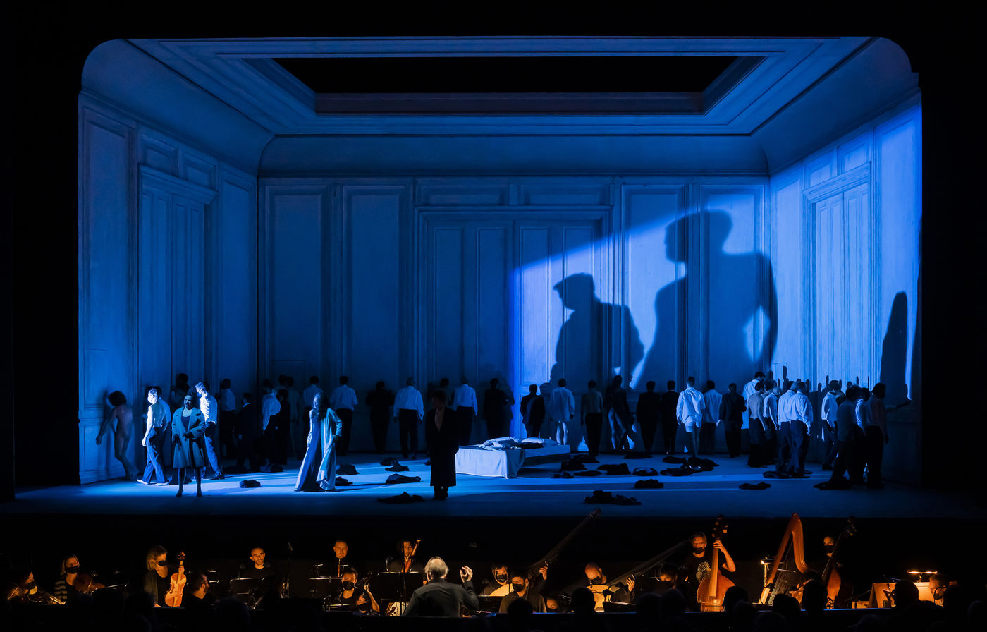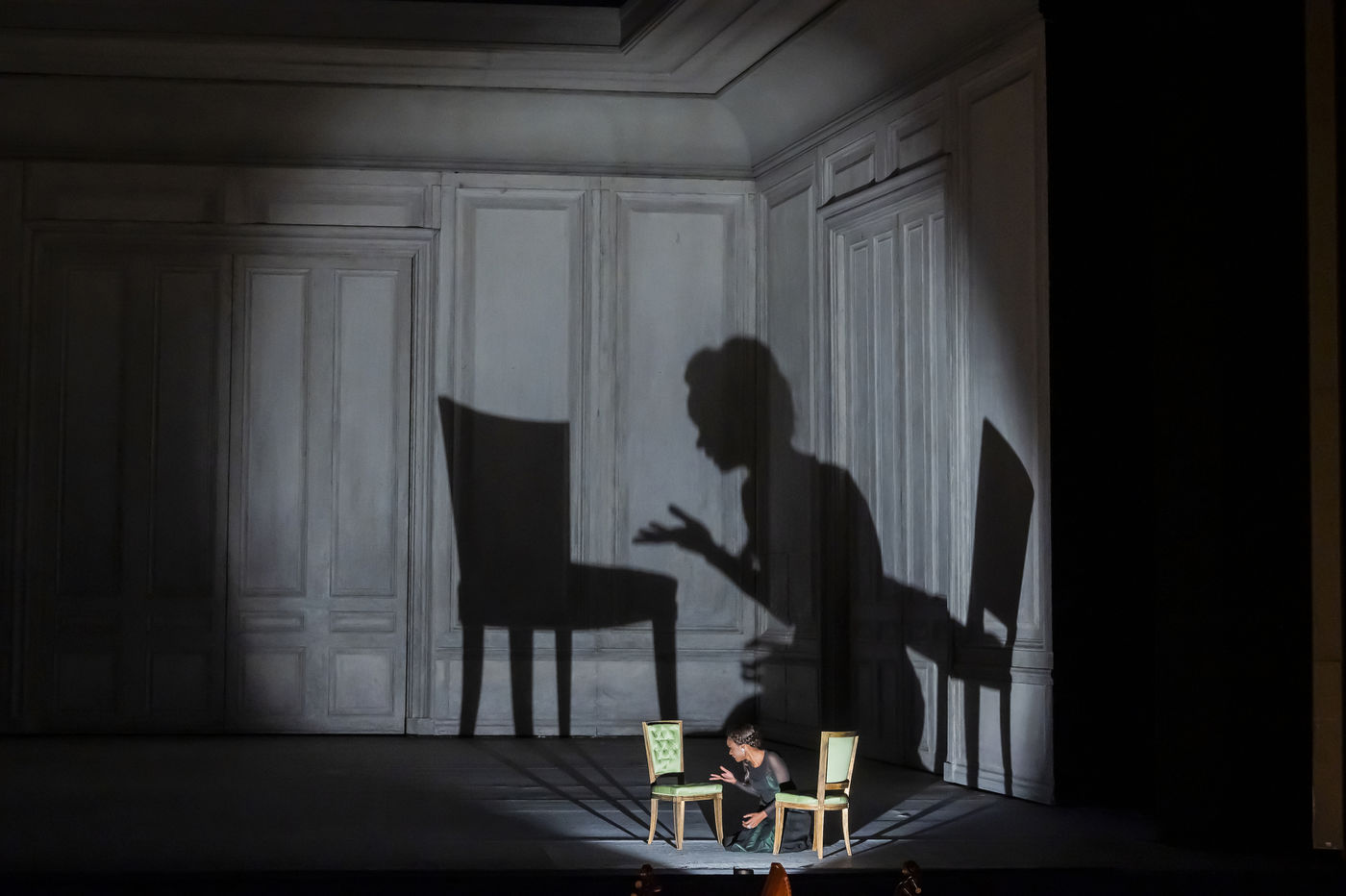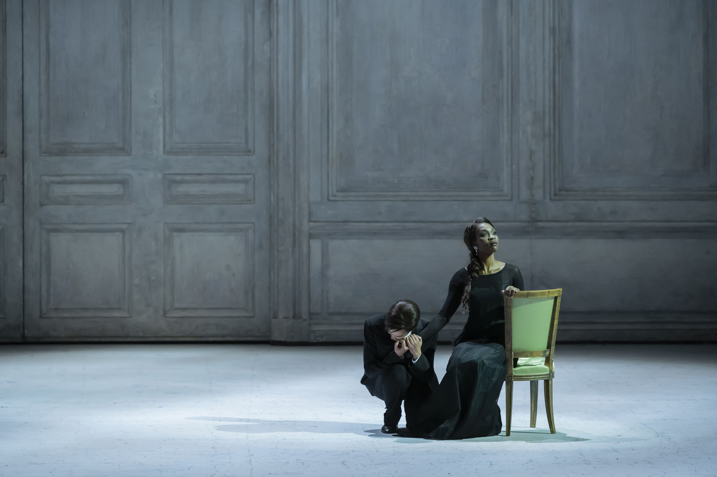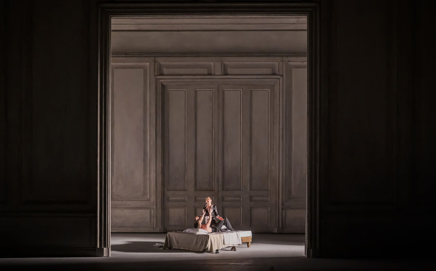 ALCINA musique Georg Freidrich Haendel direction musicale Thomas Hengelbrock mise en scene Robert Carsen avec Jeanine De Bique : Alcina, Gaelle Arquez : Ruggiero, Sabine Devieilhe : Morgana, Roxana Constantinescu : Bradamante, Rupert Charlesworth : Oronte et Nicolas Courjal : Melisso : Melisso a l Opera National de Paris Palais Garnier. Photographie de Pascal Gely / Hans Lucas