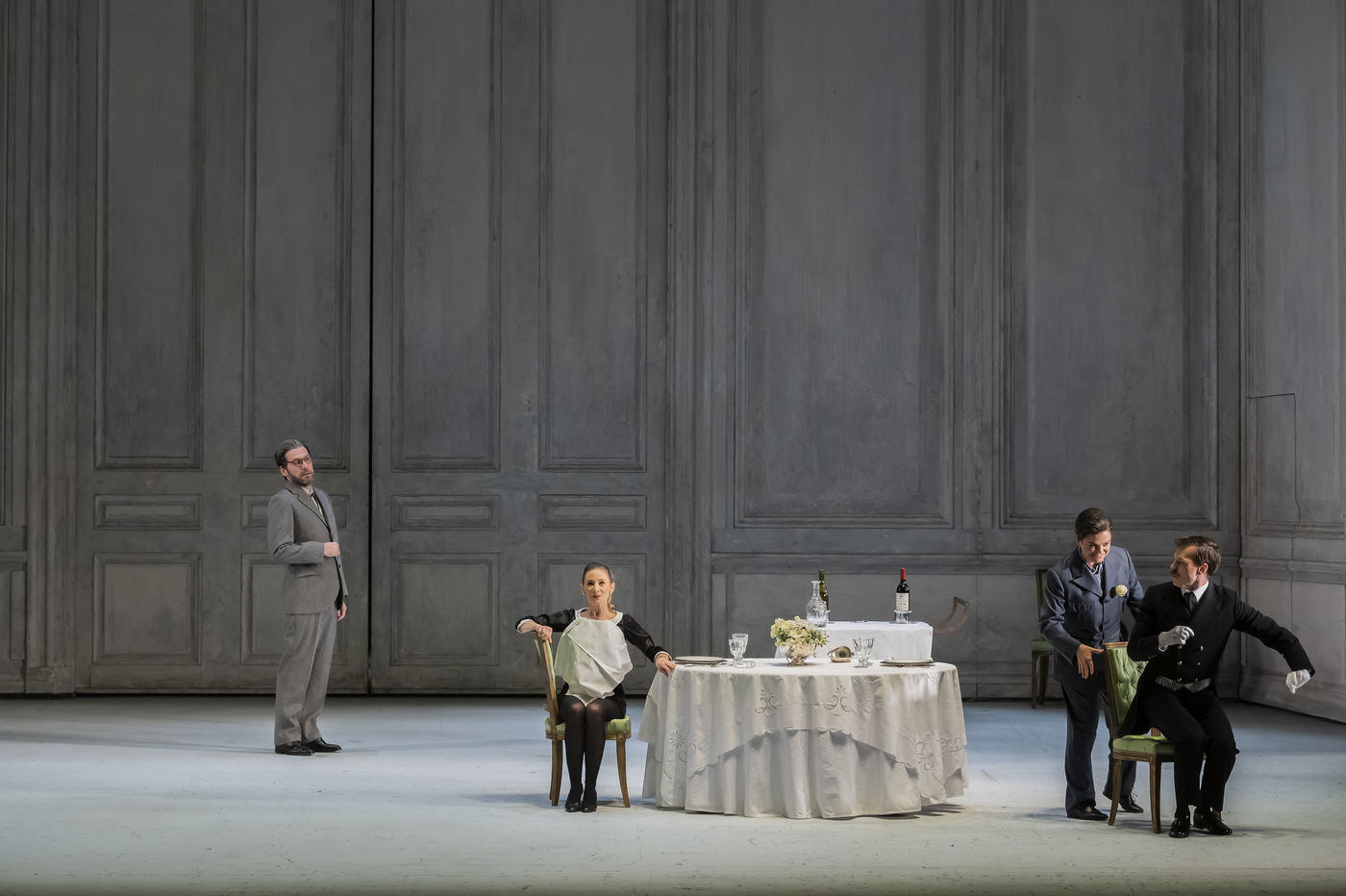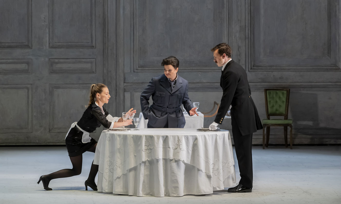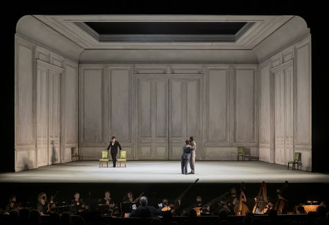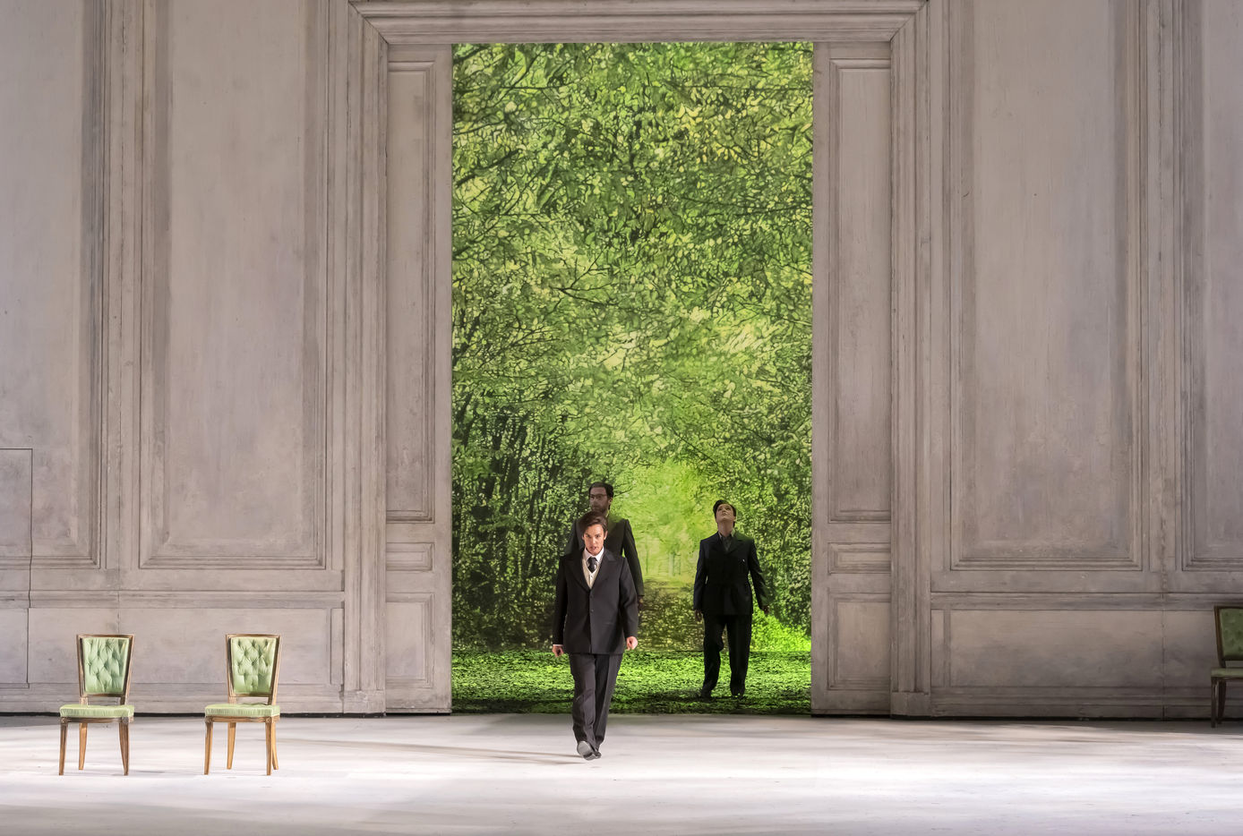 ALCINA music by Georg Freidrich Haendel music direction by Thomas Hengelbrock stage direction by Robert Carsen with Jeanine De Bique : Alcina, Gaelle Arquez : Ruggiero, Sabine Devieilhe : Morgana, Roxana Constantinescu : Bradamante, Rupert Charlesworth : Oronte and Nicolas Courjal : Melisso : Melisso at the Opera National de Paris Palais Garnier. Photograph by Pascal Gely / Hans Lucas