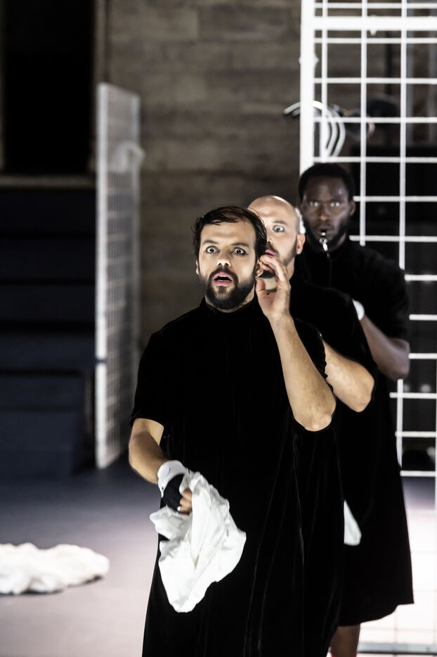 NOT Choregraphie de Marlene Monteiro Freitas avec Marie Albert, Joaozinho da Costa, Miguel Filipe, Ben Green, Henri « Cookie » Lesguillier, Tomas Boital, Rui Paixao et Marian Freitas a la Cour d Honneur du Palais des Papes Avignon. Photographie de Pascal Gely / Hans Lucas