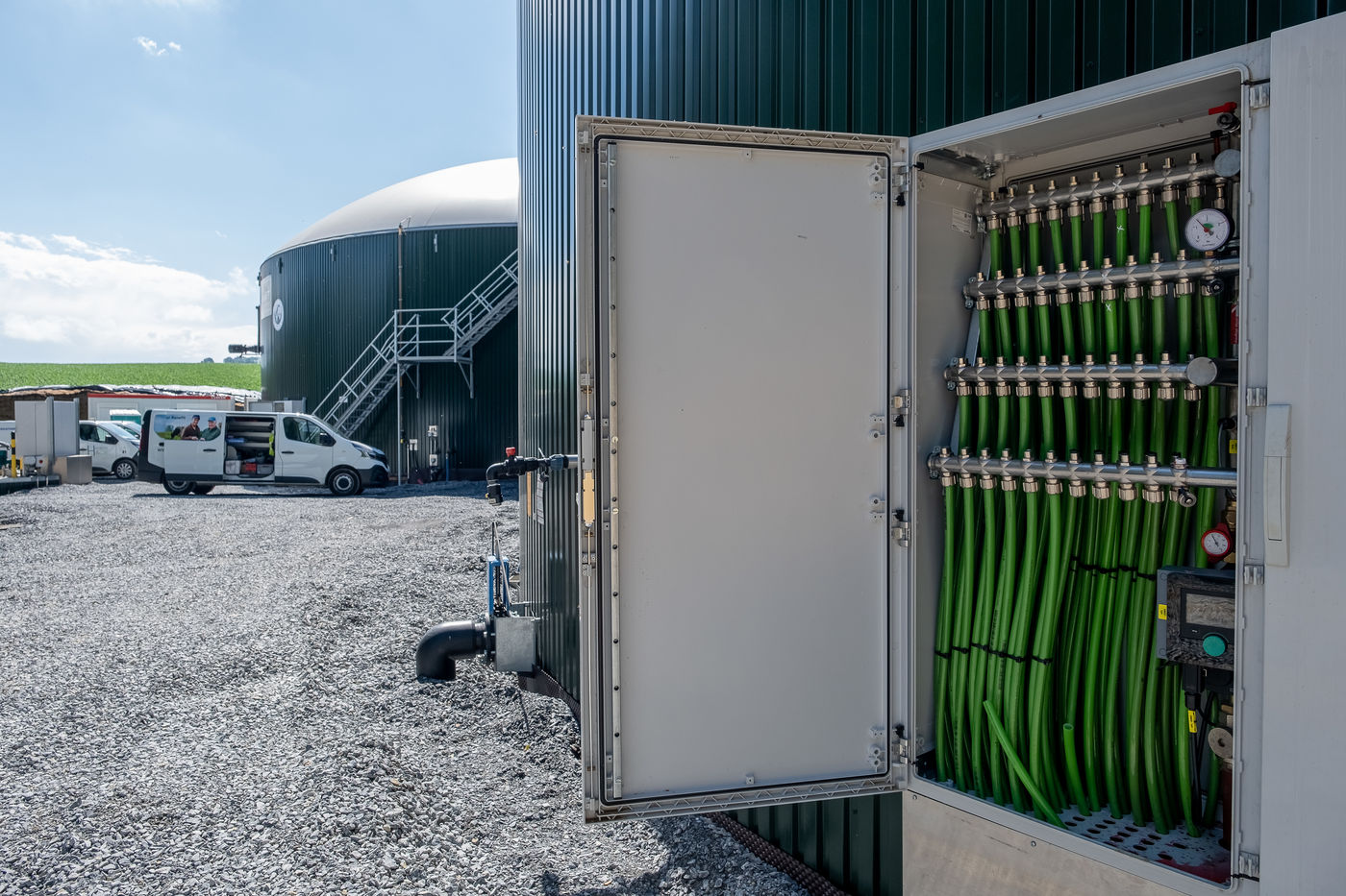 Ideally located between two hills, in the middle of associated agricultural exploitations that will help feed its production, the methanisation unit