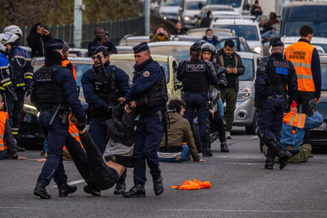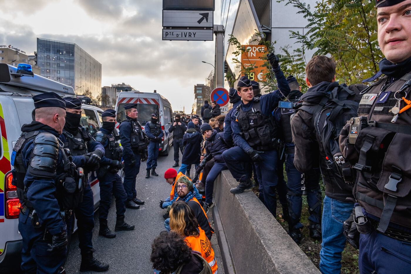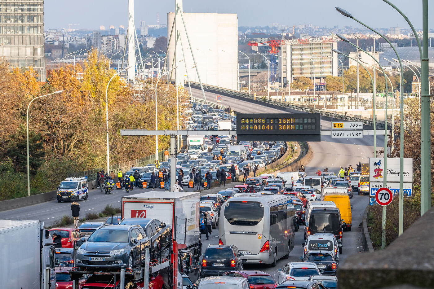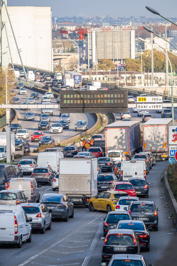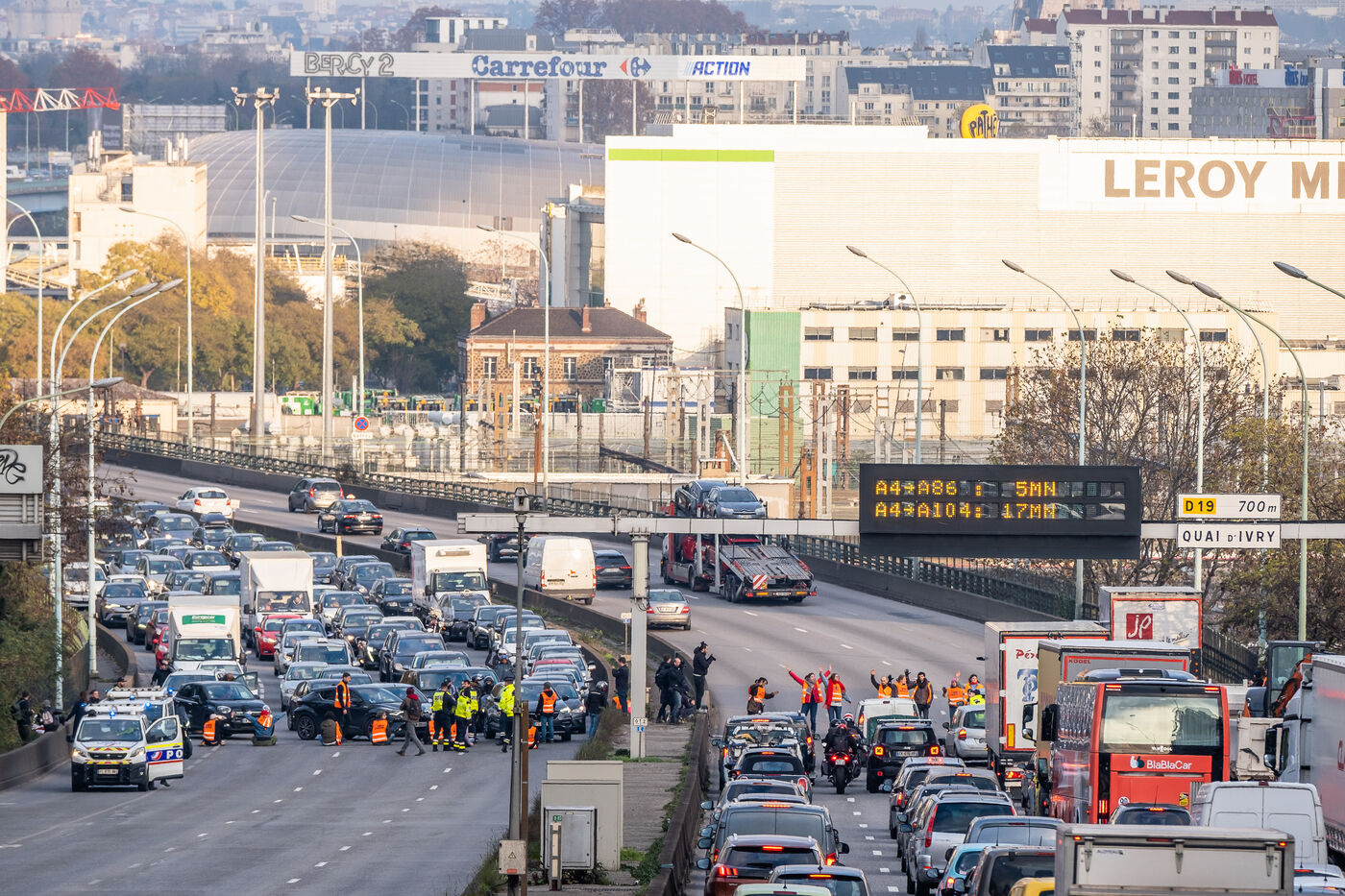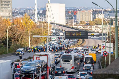 Pour la derniere action de cette vague, les activistes de Derniere Renovation bloquent le peripherique parisien.