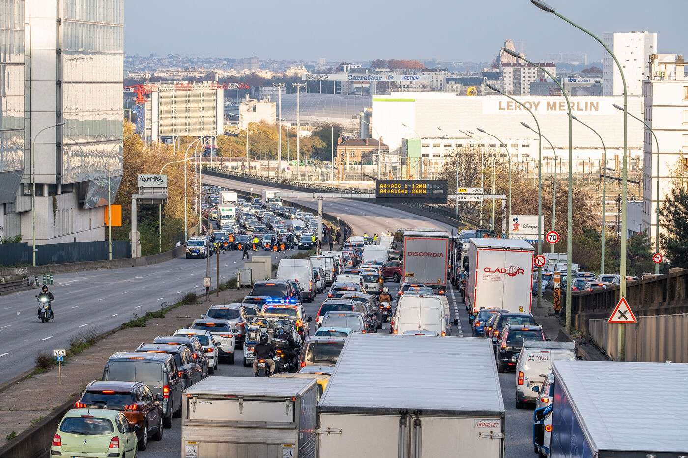 For this wave's last action, Derniere renovation blockades the Paris ring road.