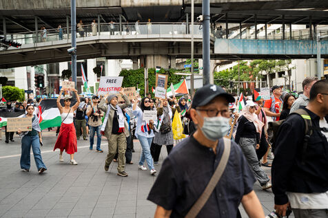 Le 15 juin 2025, une marche de solidarité s’est déroulée à Bangkok, en Thaïlande, organisée par le Palestine Solidarity Campaign (PSC). Les manifestants se sont réunis à la station BTS Chidlom avant de se diriger vers le MBK Center. La marche s’inscrivait dans un mouvement mondial de soutien à la "Global March to Gaza", arrivée le même jour à la frontière de Rafah. Les manifestants brandissaient des pancartes et scandaient des slogans appelant à la fin du génocide, de l’apartheid et de l’occupation en Palestine. Ils ont exigé un cessez-le-feu immédiat et l’entrée de l’aide humanitaire à Gaza. La manifestation pacifique visait à exprimer la solidarité internationale avec le peuple palestinien et à relayer les appels mondiaux à la justice et à l’action humanitaire.
