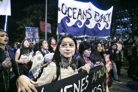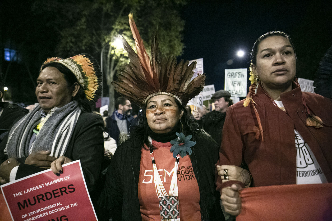 Une grande manifestation non violente pour protester contre le changement clmatique a eu lieu entre la Gare d'Atocha et le quartier de Nuevos Ministerios, a Madrid, pendant la COP25. Plusieurs collectifs etaient presentes, entre eux des activistes pour les droits de l'homme chiliens, des representants des peuples originaires de l'Amazonie et autres parts de la planete, et aussi plus d'une douzaine d'organizations politiques, ecologiques et feministes espagnoles, portugaises et allemandes entre autres.