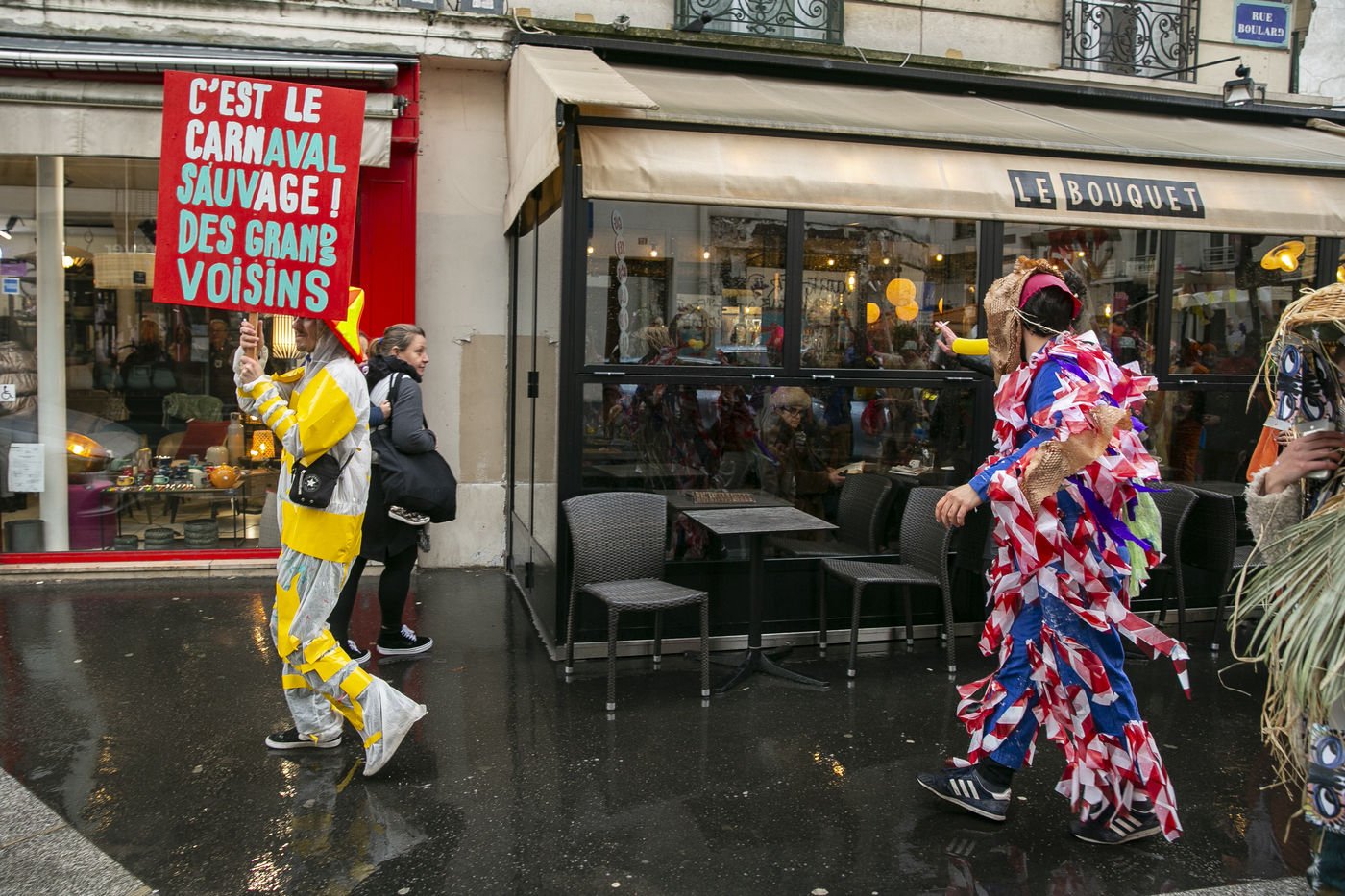 Le 29 février 2020 et avec le thème "sauvage" se celebre la fête du carnaval du centre culturel autogéré des Grands Voisins dans 14eme arrondissement de Paris. Avec une participation moins nombreuse que dans d'autres occasions a cause de la pluie et le vent, il sera la dernière fois que cette célébration aura lieu car le centre fermera au long de l'été 2020 (Paris).