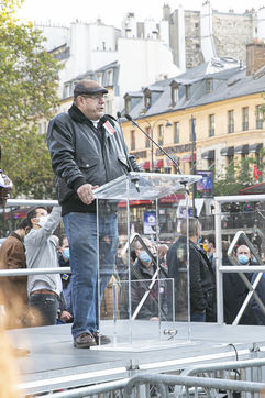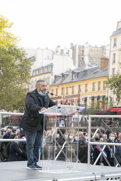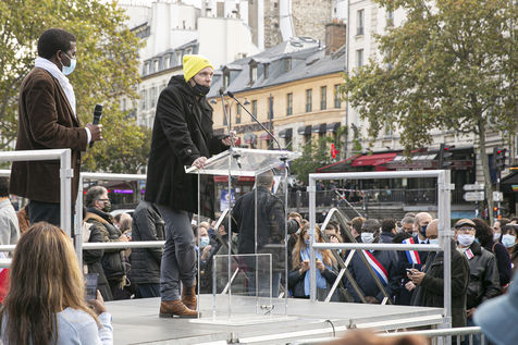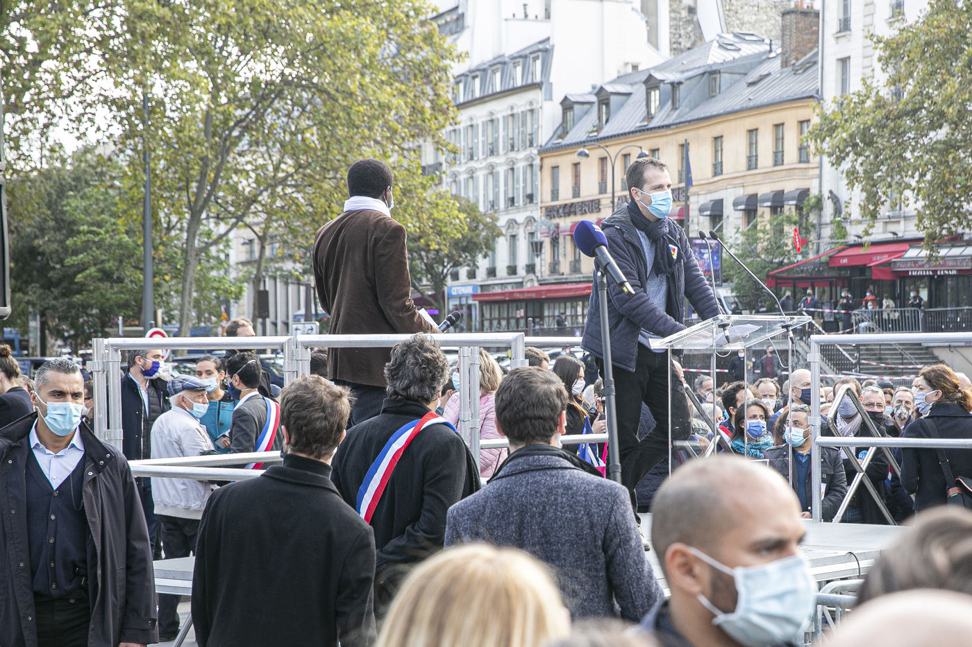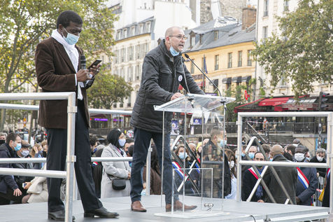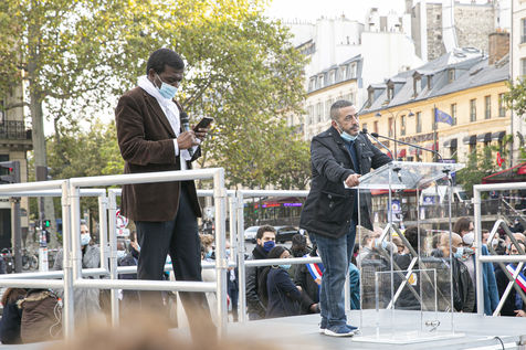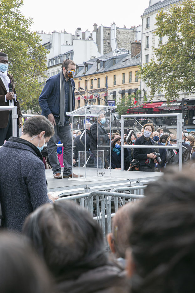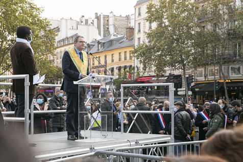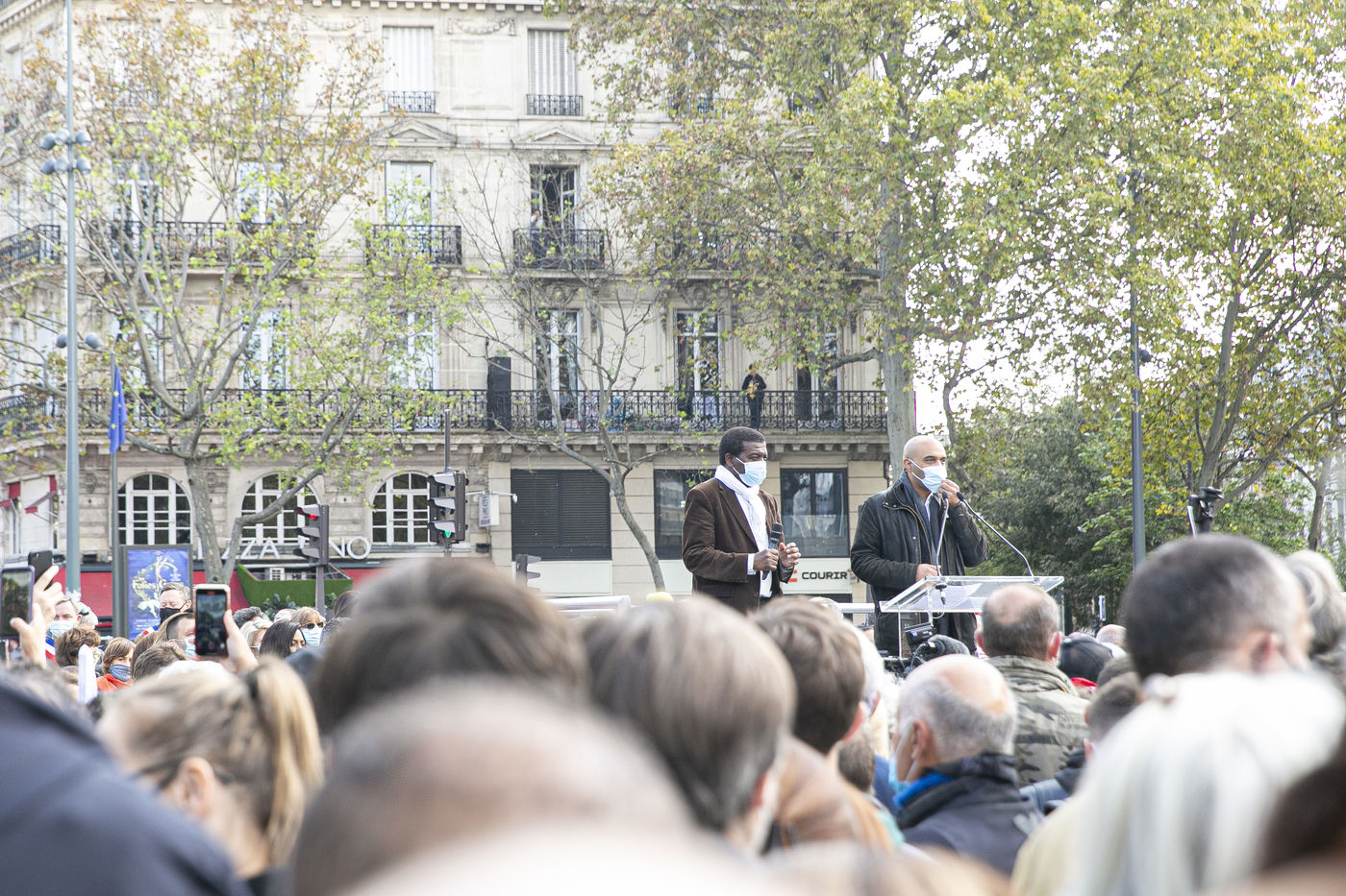 Numerous elected officials and members of civil society took part in the mobilisation. Paris 18/10/2020. Photograph by Pablo Porlan / Hans Lucas.