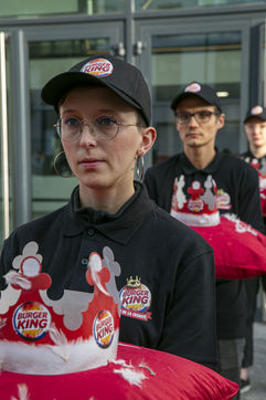 Action contre Burger King pour dénoncer la cruauté de leurs pratiques avec les animaux. Photographies de Pablo Porlan/ Hans Lucas.