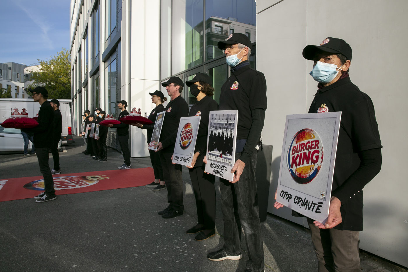 ACTION AGAINST ANIMAL CRUELTY HELD BY L214 ASSOCIATION AT BURGER KING HEAD QUARTERS