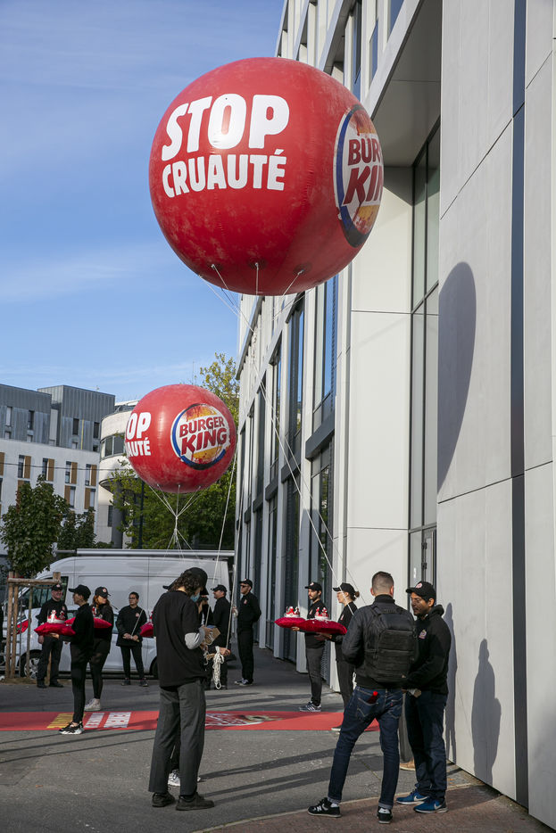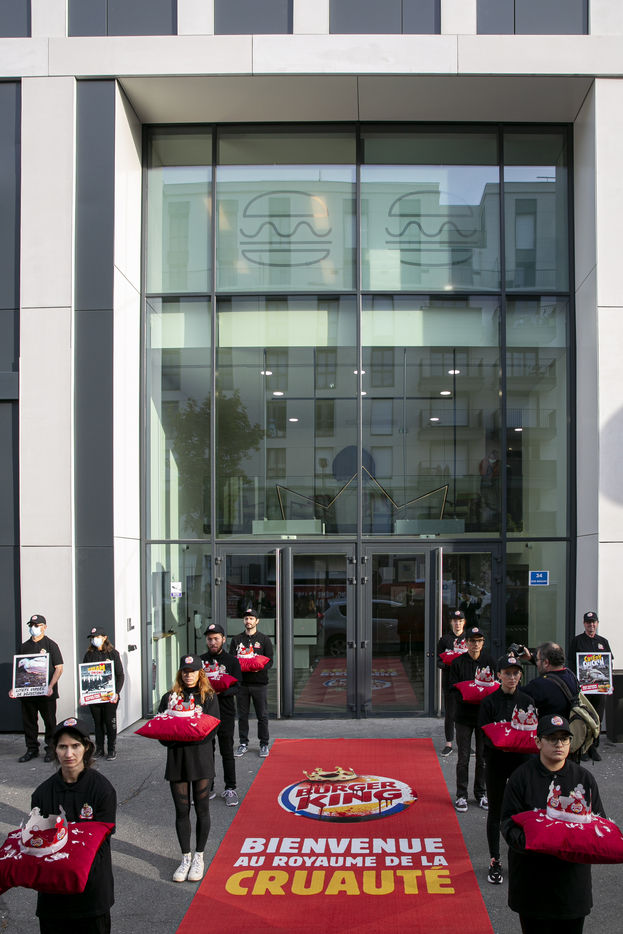 ACTION CONTRE LA CRUAUTÉ ENVERS LES ANIMAUX ORGANISÉE PAR L' ASSOCIATION L214 AU SIÈGE DE BURGER KING