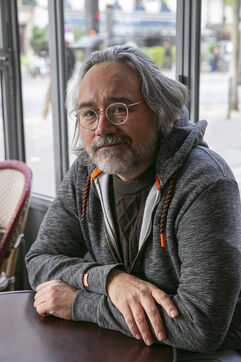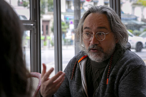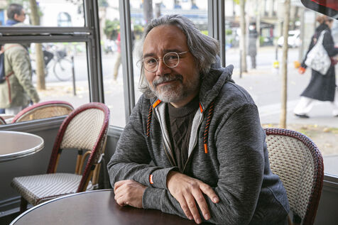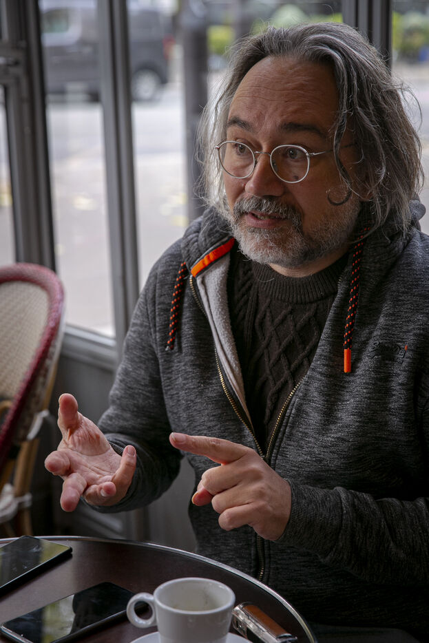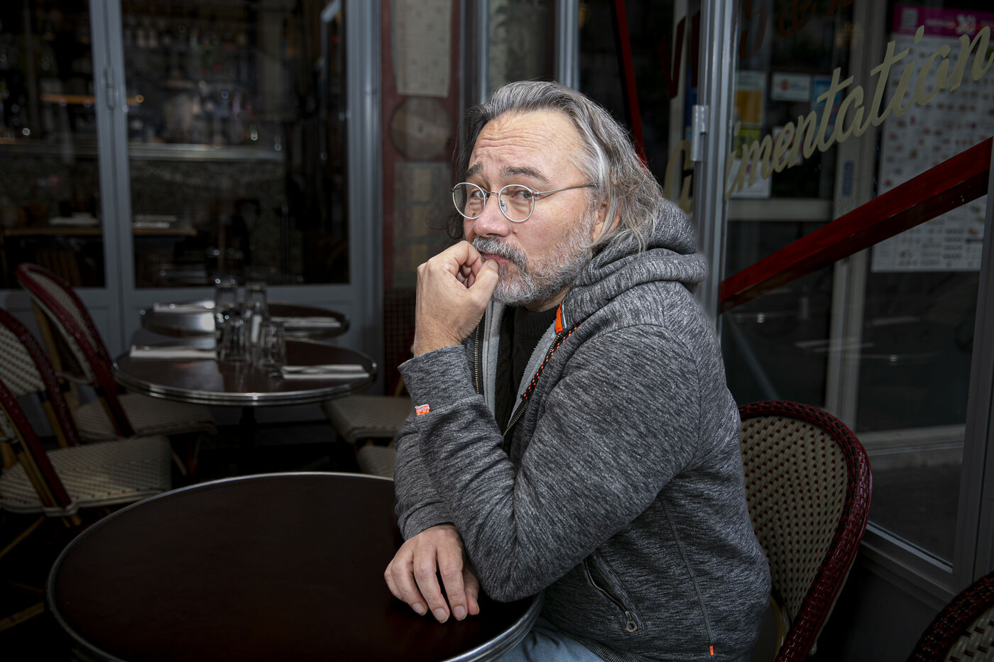 Paris, 2022-11-26 Hubert Guillaud, journalist and editorialist specialising in technical and digital systems, was the editor-in-chief of InternetActu.net. His last book was published in October 2022 under the title "Coinces dans Zoom. A qui profite le télétravail?". Photographs by Pablo Porlan/ Hans Lucas.