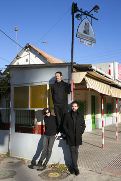 Interprètes : Pedro Rojas Ogáyar (manteau noir) est le co-directeur artistique de l'ensemble de recherche musicale Proyecto OCNOS. Juan Luis Matilla (manteau bleu) est danseur, chorégraphe et directeur de la compagnie MOPA. Julia Moyano est comédienne, professeure de théâtre à l'Escuela Superior de Arte Dramático de Séville et co-fondatrice du collectif La Rara.