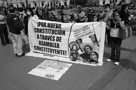 La manifestation du 1er Mai à Lima se tenait à l'initiative de la CGTP (Confederación General de Trabajadores del Perú). Le cortège s'est formé de la place Dos de Mayo, devant le siège de la CGTP, depuis le balcon duquel a notamment pris la parole Pedro Castillo, président de la République Péruvienne, jusqu'à la statue de José Carlos Mariátegui, dans l'Avenue 28 de Julio dans le centre de Lima. Les revendications portent sur le droit du travail, mais aussi sur l'appel à une assemblée constituante, l'une des promesses de campagne de Pedro Castillo. Ce dernier accuse l'actuelle constitution qui érige le libéralisme économique en principe d'être responsable des inégalités économiques au Pérou.